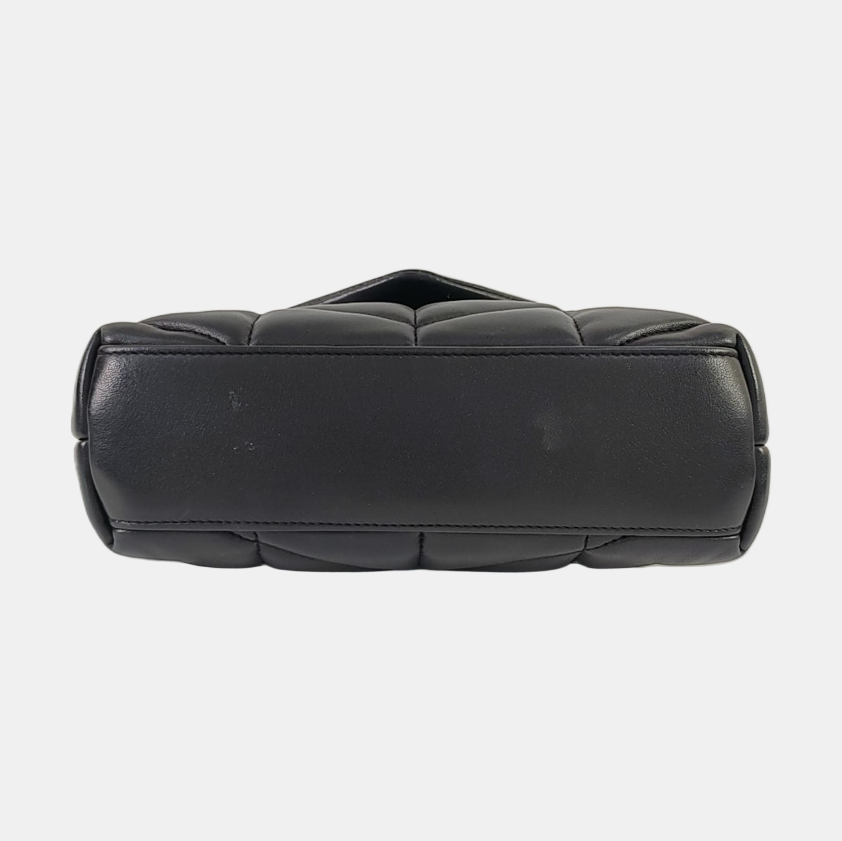 YSL PUFFER Mini Black Sheepskin Quilted V-Stripe Envelope Bag Crossbody Shoulder Bag Golden Hardware-(SKU)-967113797