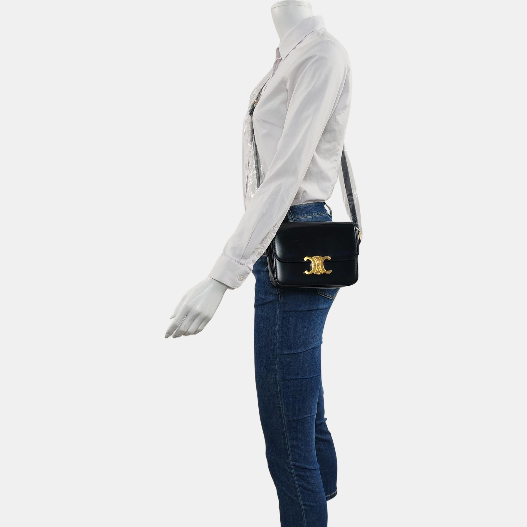 CELINE TRIOMPHE Small Black Cowhide Single Shoulder Bag Golden Hardware-(SKU)-960476690