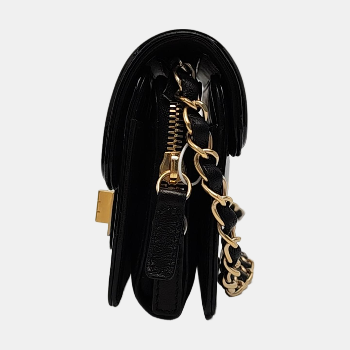 CHANEL 2.55 Black Patent Leather Single Shoulder Bag Crossbody Bag Golden Hardware 12 Clasp-(SKU)-956888916