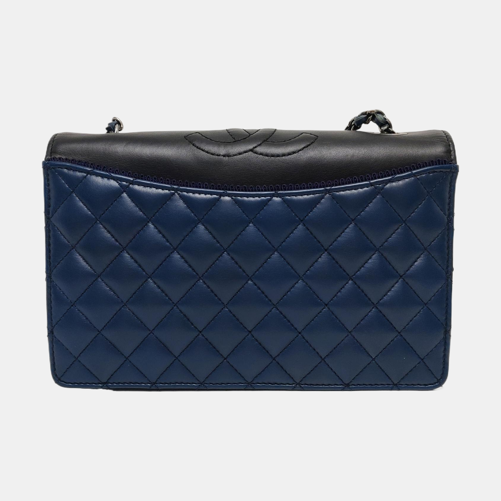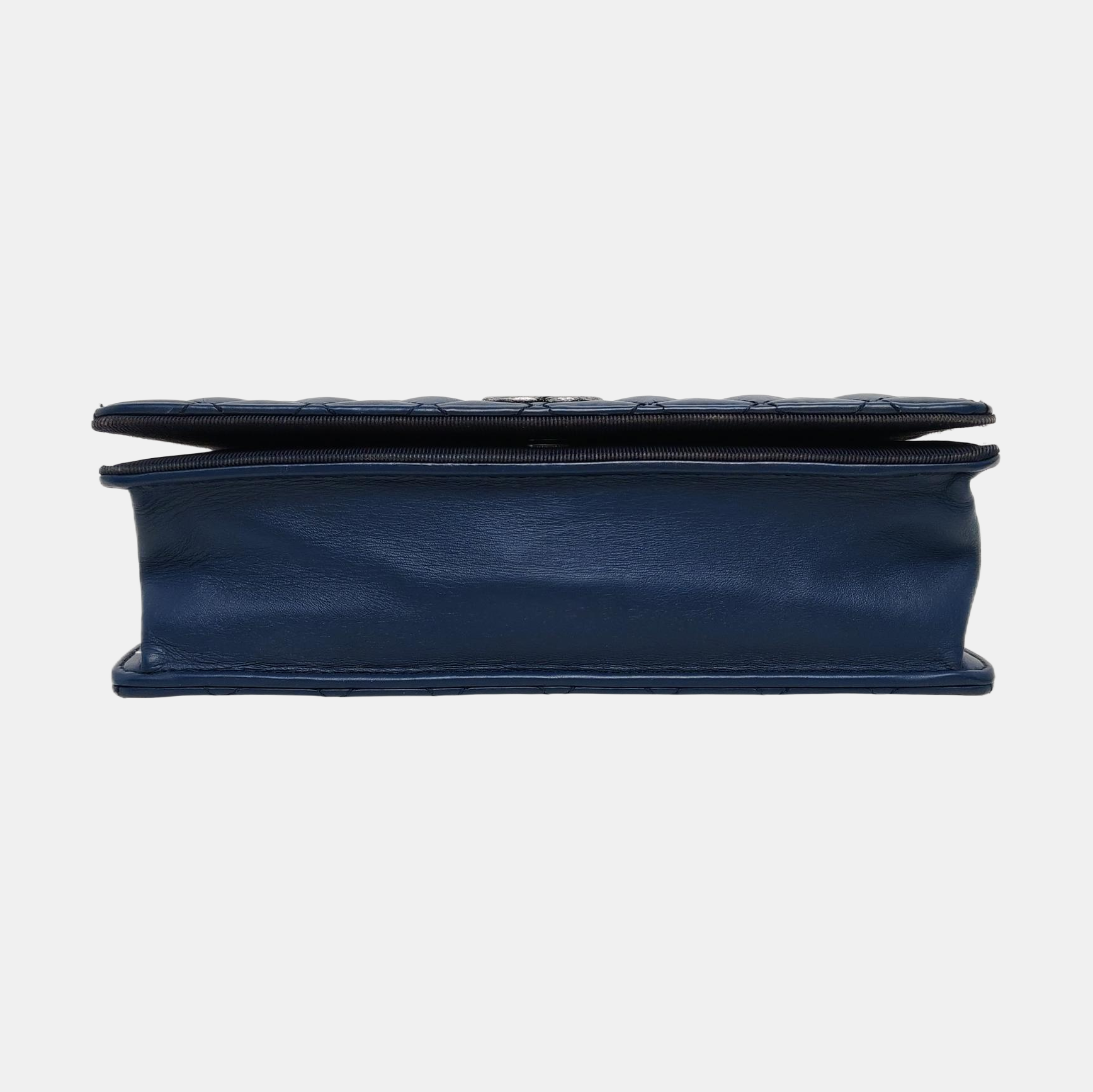 CHANEL BALLERINE Deep Blue Leather Quilted Monogram Shoulder Bag Crossbody Bag Silver Hardware 23cm-(SKU)-969147033
