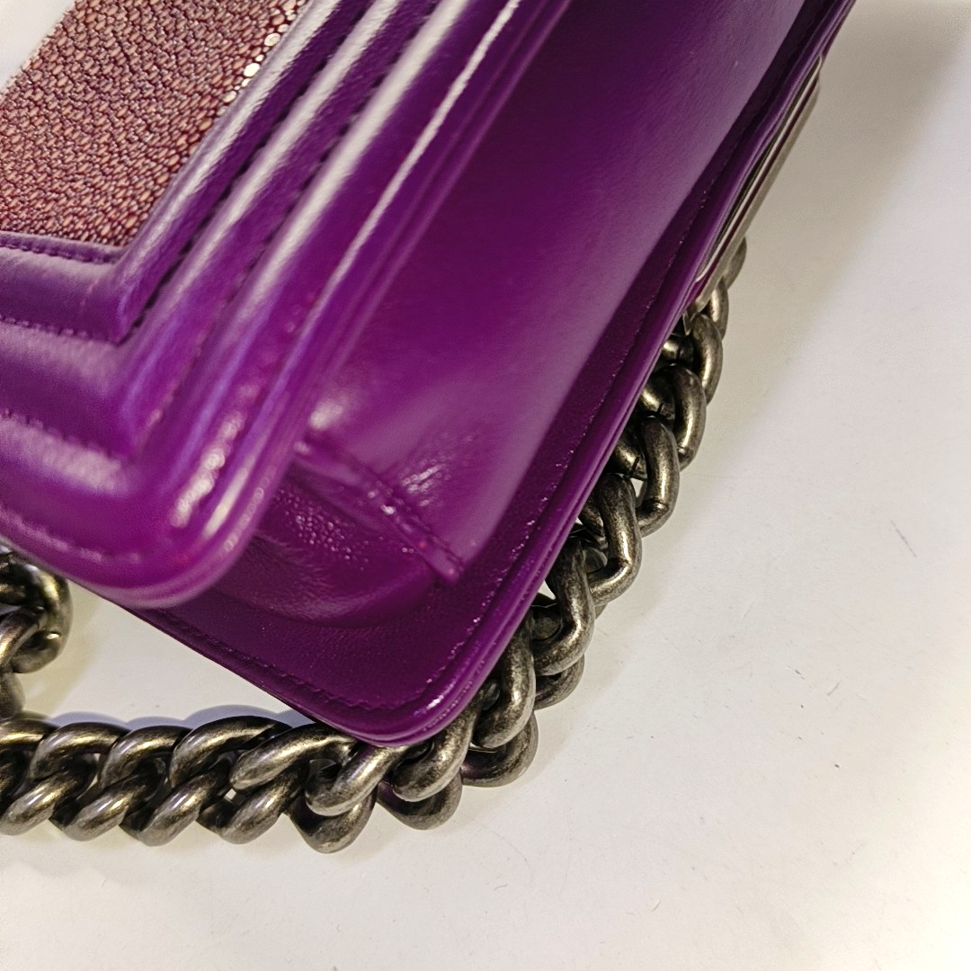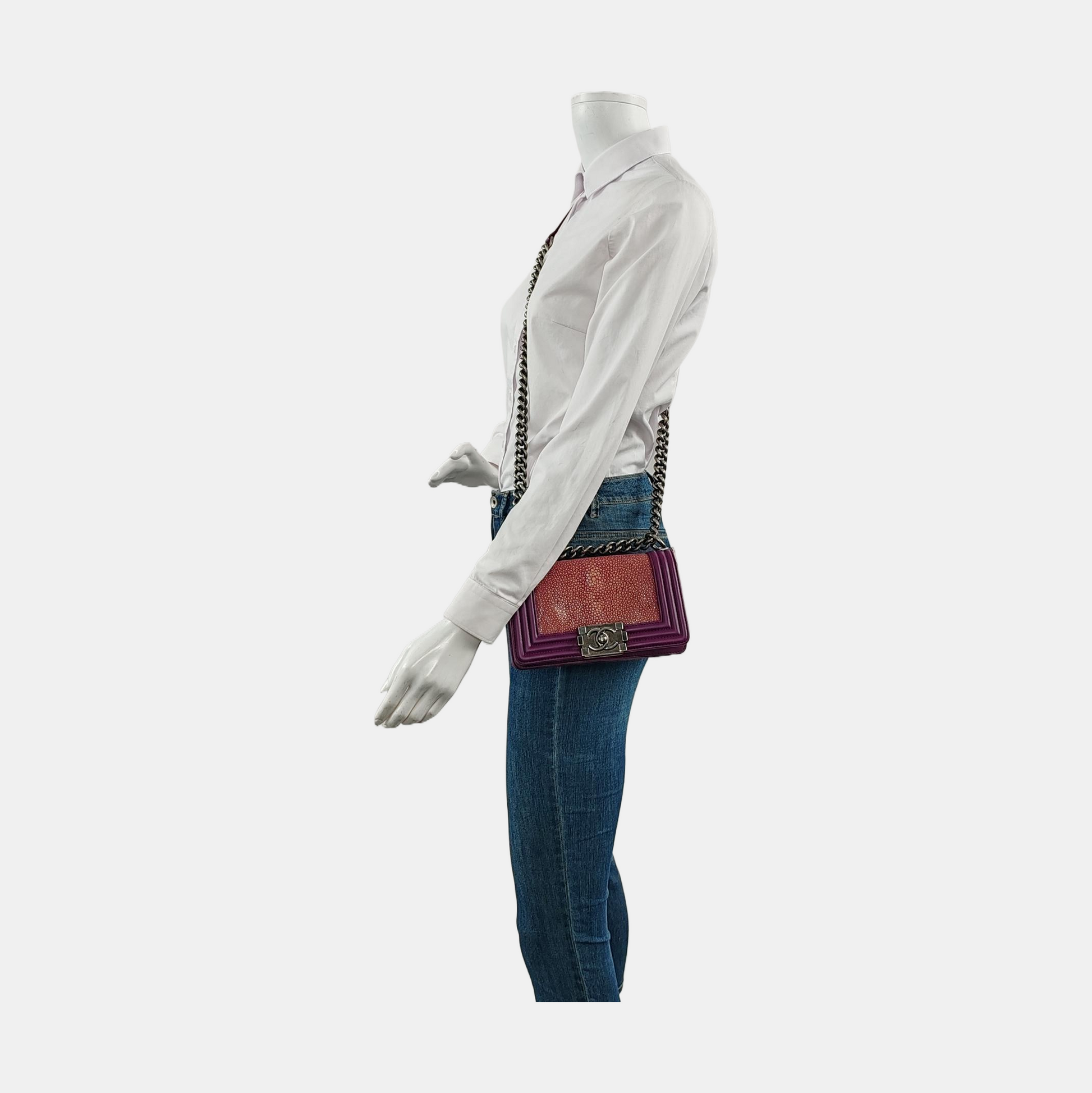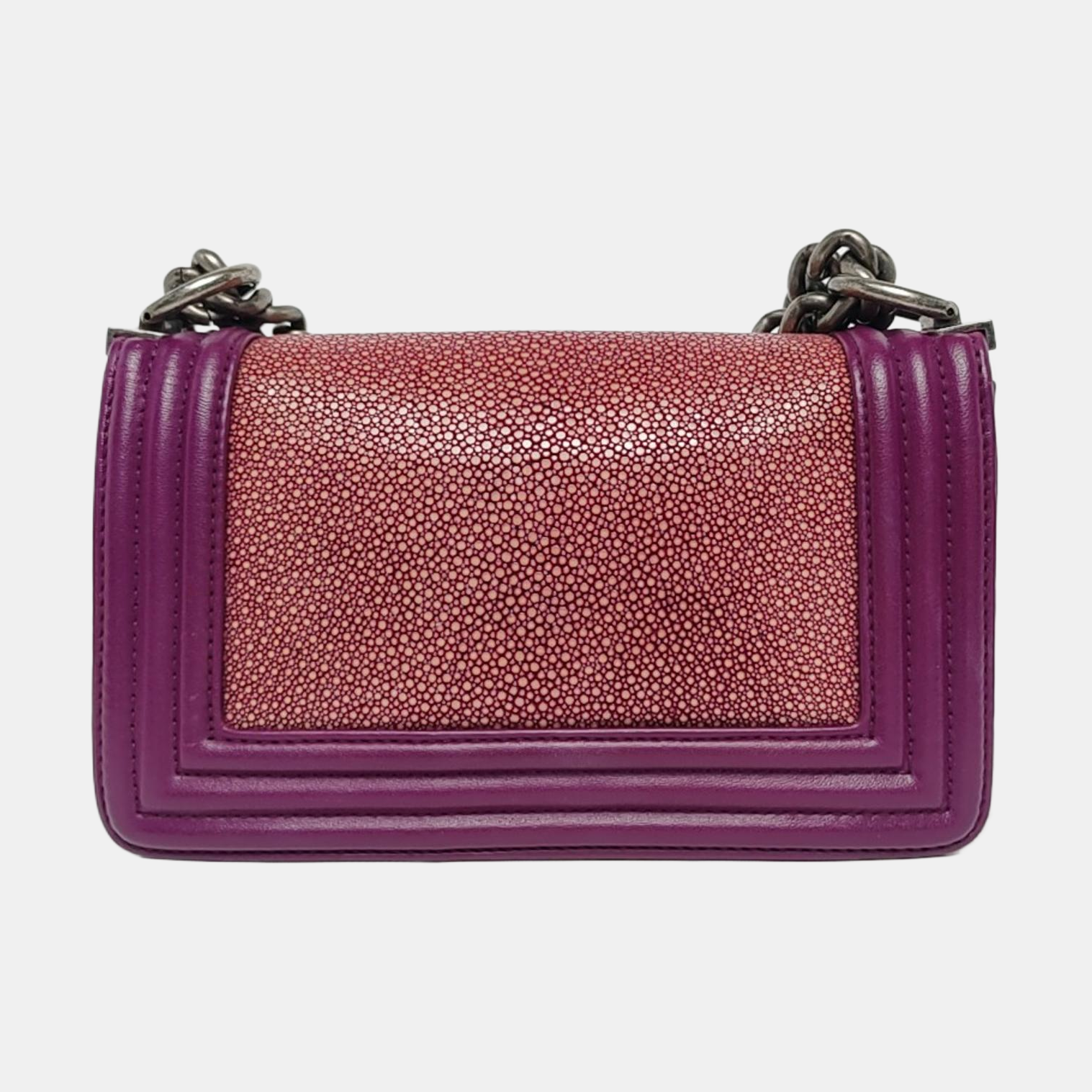 CHANEL BOY CHANEL Small Pink Pearl Fish Leather Quilted Diagonal Shoulder Bag with Detachable Strap-(SKU)-958631912
