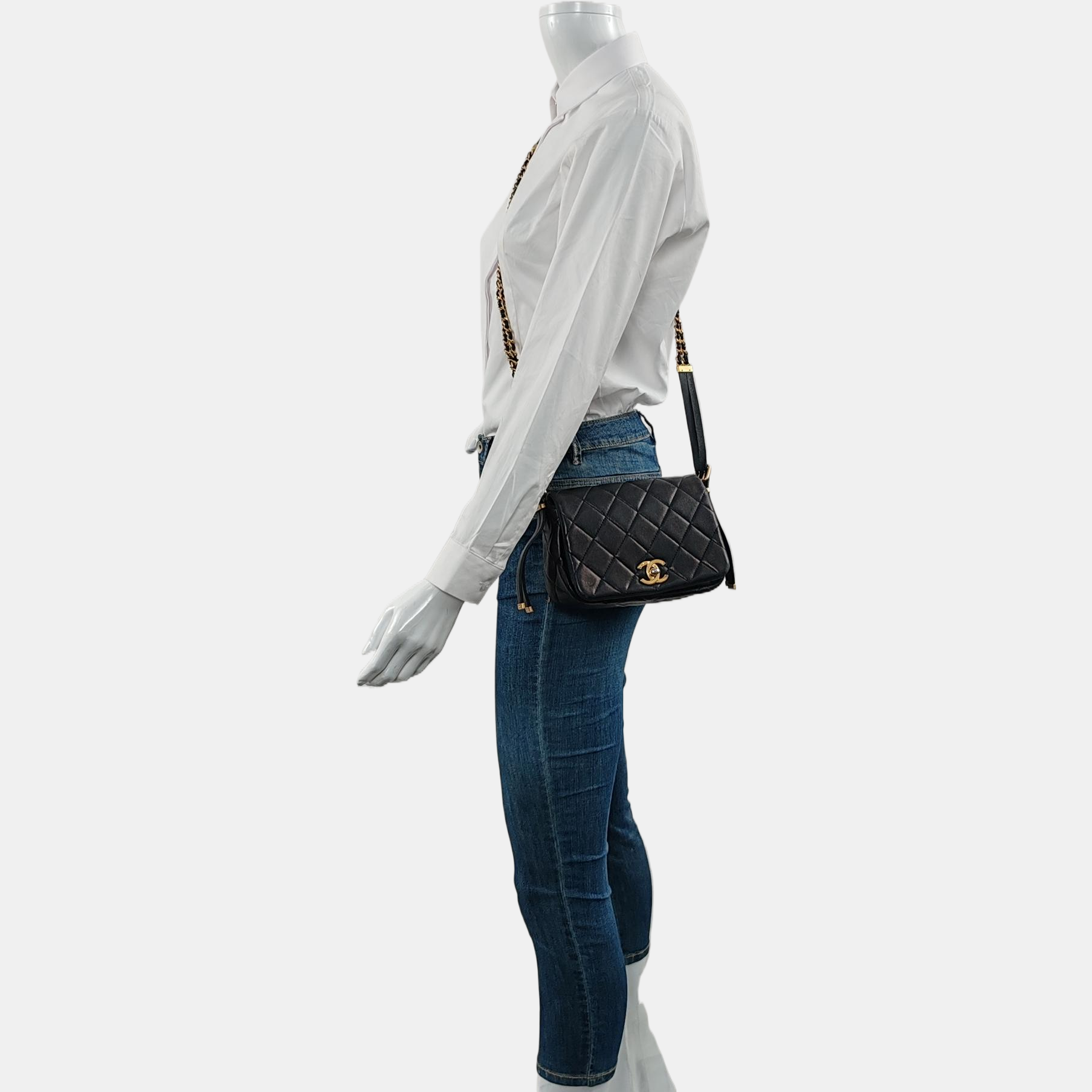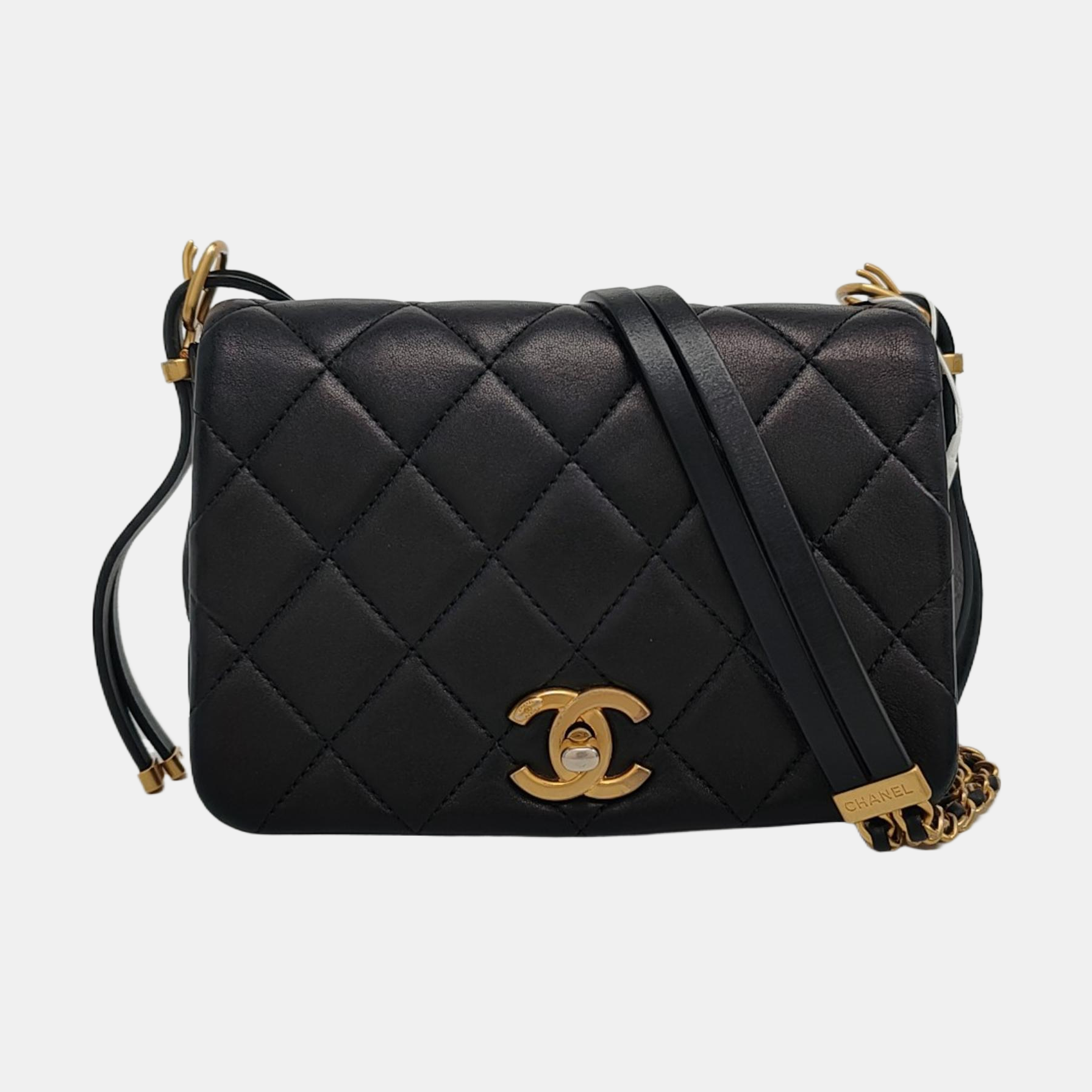 CHANEL CLASSIC FLAP black lambskin quilted diamond pattern crossbody bag shoulder bag gold hardware-(SKU)-967910600