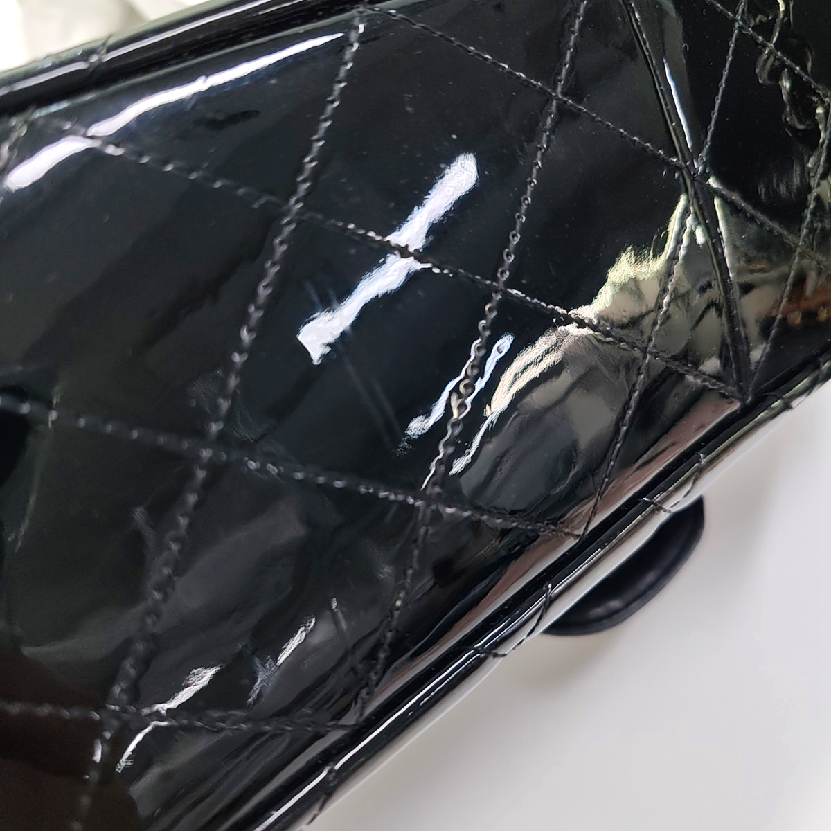 CHANEL CLASSIC FLAP Large Size Black Patent Calfskin Quilted Jumbo Crossbody Bag Shoulder Bag Silver Hardware 13 Opening-(SKU)-954460430