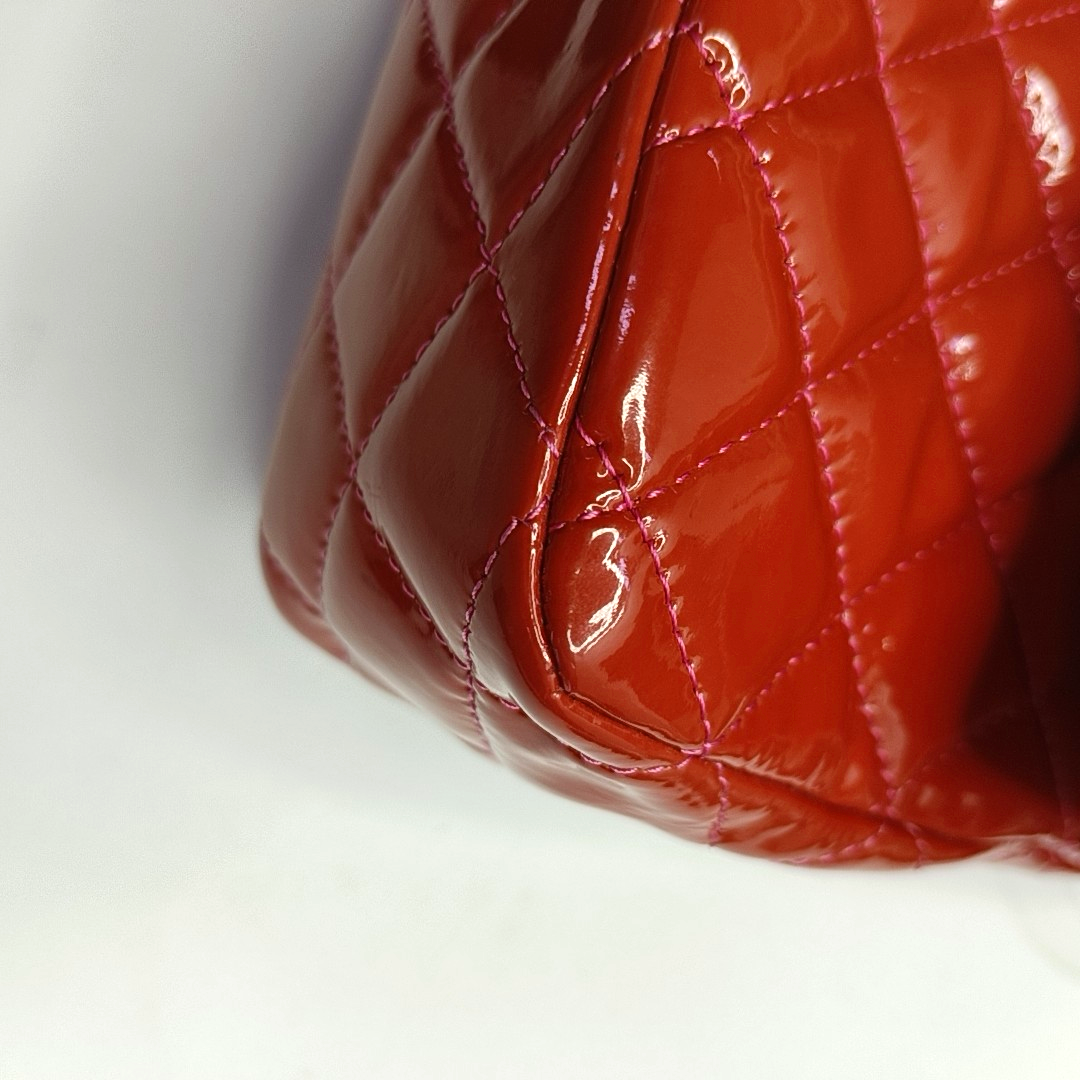 CHANEL CLASSIC FLAP Orange Patent Leather Quilted Crossbody Shoulder Bag with Silver Hardware, 14K-(SKU)-959565194