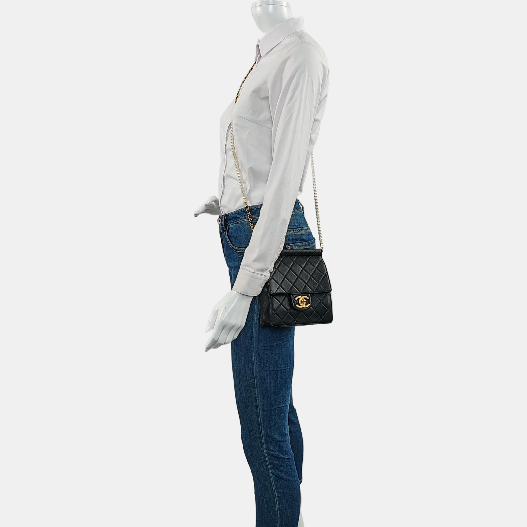 CHANEL EX FLAP Black Cowhide Quilted Monogram Shoulder Bag Crossbody with Gold Hardware, 27 Clasp-(SKU)-967025083