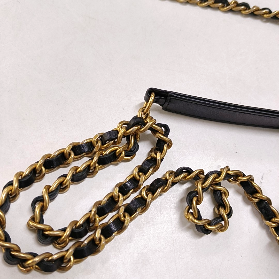 CHANEL FILIGREE black leather quilted diamond pattern crossbody bag shoulder bag gold hardware 27 opening-(SKU)-947863441