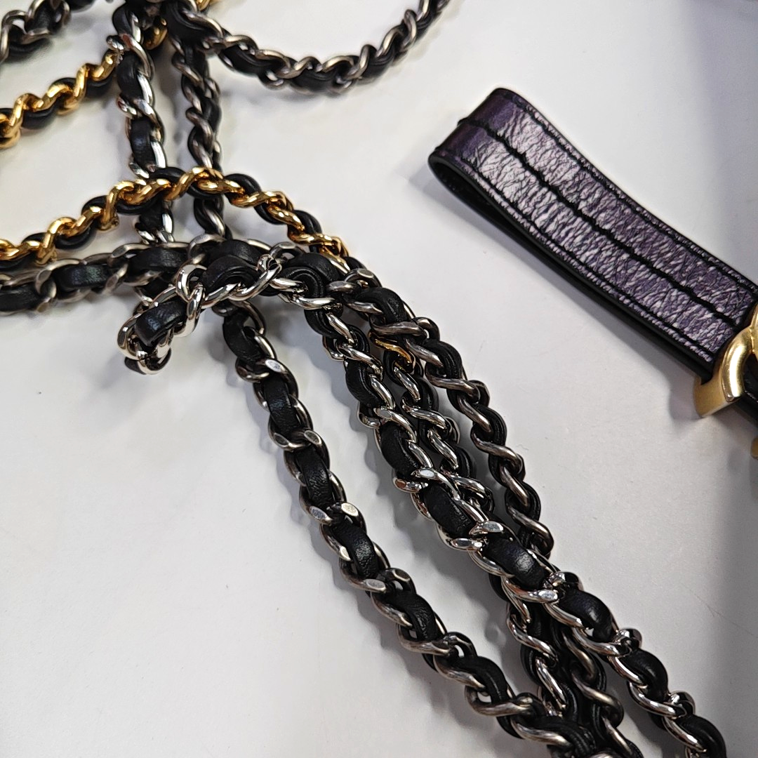 CHANEL GABRIELLE Small Size Radiant Calfskin Quilted Diagonal Bag, Shoulder Bag, Crossbody with Detachable Strap, Golden, Silver, and Ruthenium-Colored Hardware, 27 Clasps-(SKU)-946512946