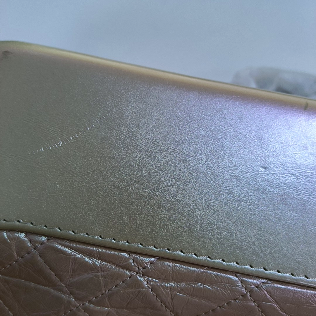 Detailed description: Strap、Slight wear on the zipper,Edge wrapping around the opening、Slight stains on the front,Slight indentation on the back,Moderate stains on the interior,Moderate scratches on the back side,Moderate wear on the four corners