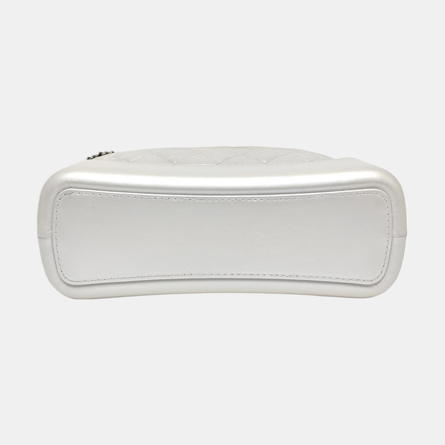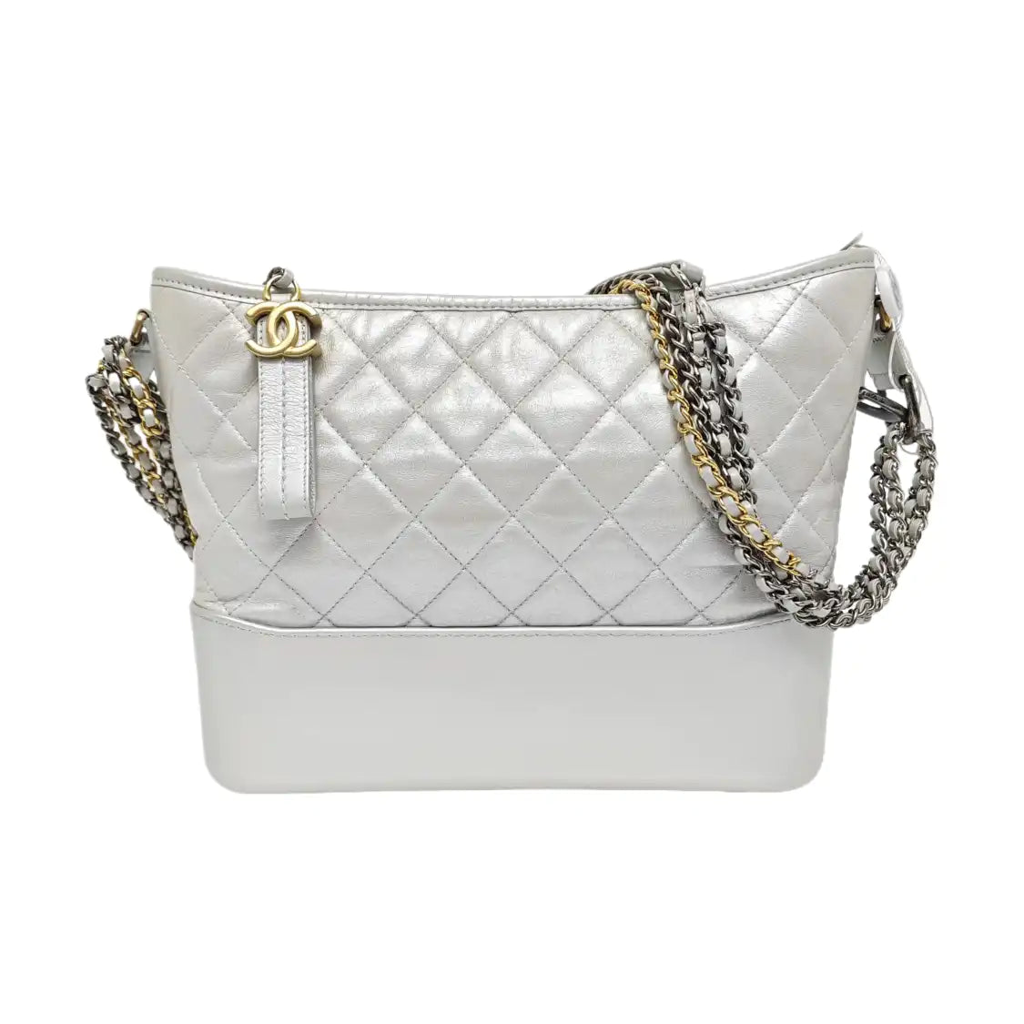 CHANEL GABRIELLE Medium Silver Calfskin Quilted Crossbody Shoulder Bag Detachable Strap-(SKU)-968143372