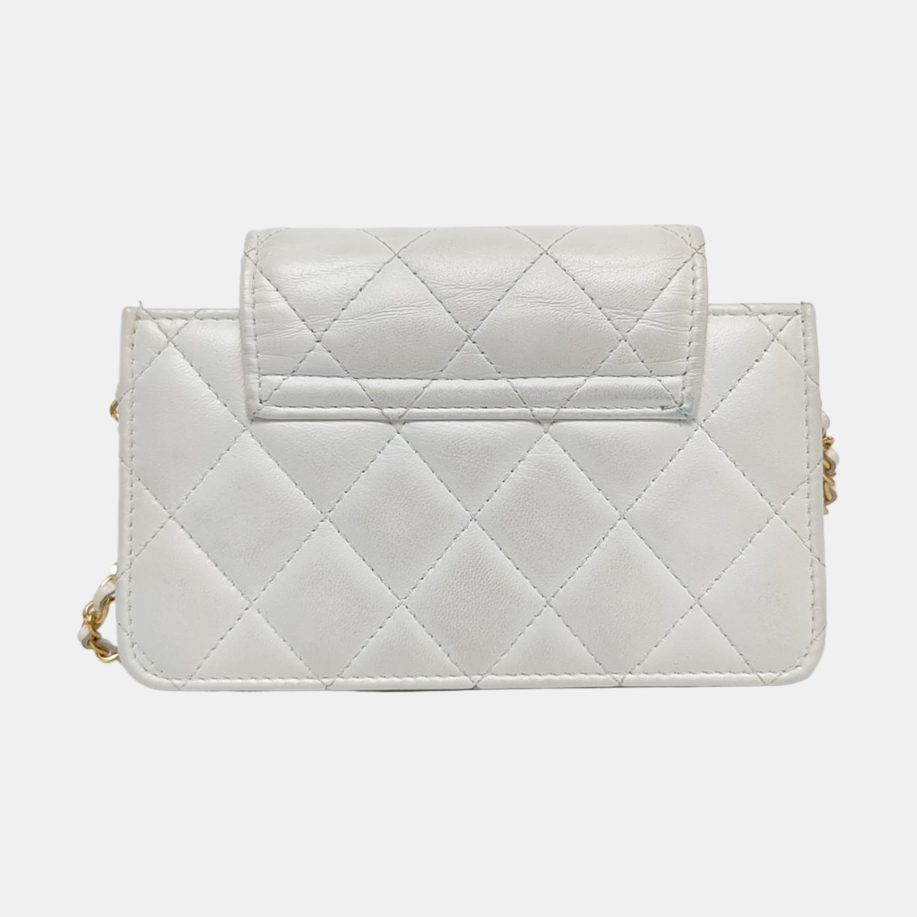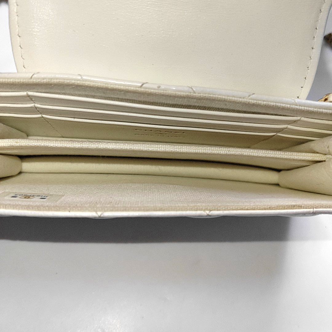 CHANEL WOC White Lamb Skin Quilted Monogram Shoulder Bag Crossbody with Gold Hardware-(SKU)-968492386