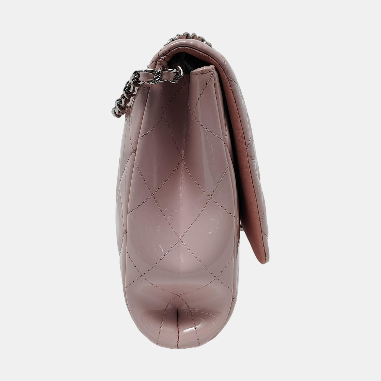 CHANEL CLASSIC FLAP Light Pink Lacquered Leather Quilted Matelassé Crossbody Shoulder Bag Handbag Gold and Silver Hardware 17 Openings-(SKU)-952358832