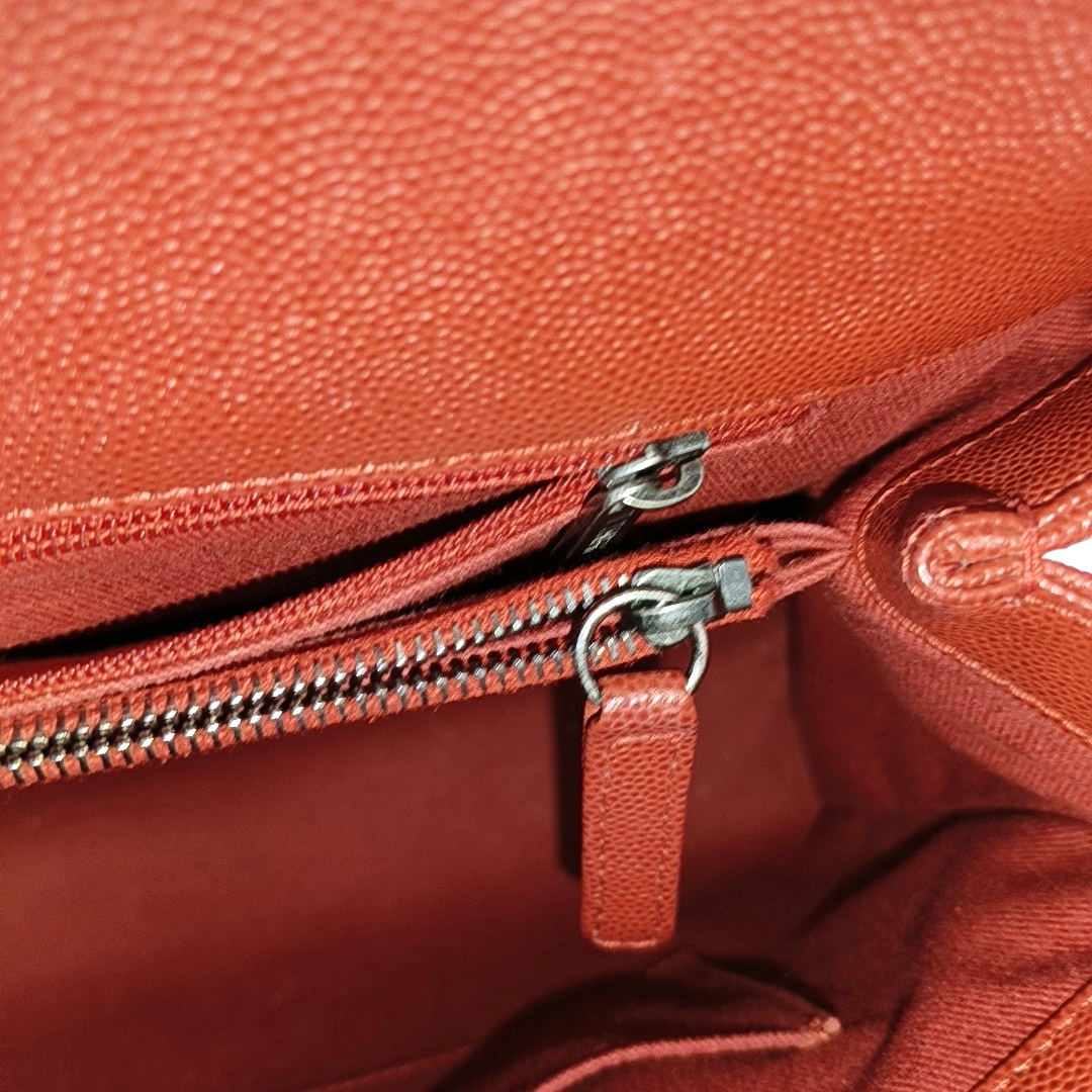 Detailed description: Interior、Edge wrapping around the opening、Handheld、Slight stains on the four corners,Zipper、Edge wrapping around the opening、Hardware buckle with moderate scratches、Hardware buckle with moderate scratches、Four corners、Slight stains on the hardware,Slight creases on the back side