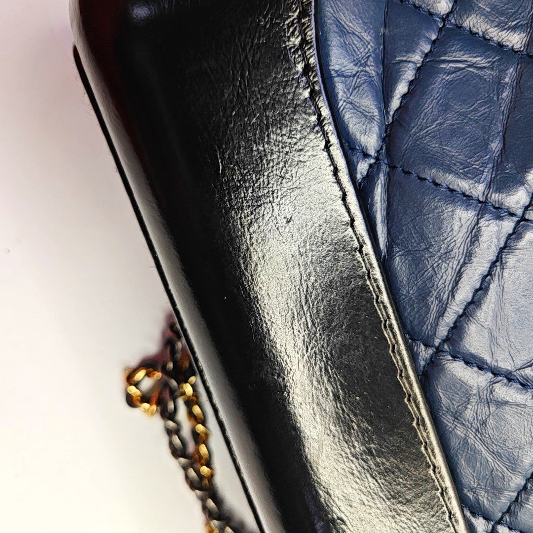 CHANEL GABRIELLE Small Size Dark Blue Leather Quilted Shoulder Bag Tote Bag Crossbody Bag Removable Strap-(SKU)-969480894