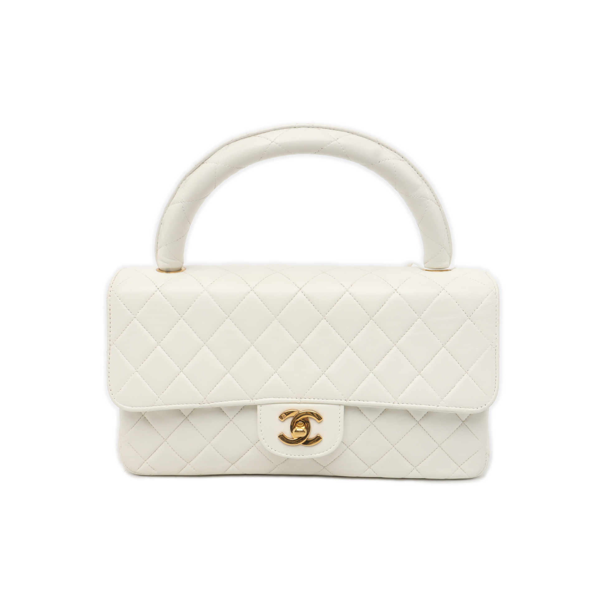 CHANEL KELLY PARENT White Calfskin Quilted Handbag with Gold Hardware, Vintage-(SKU)-931087336