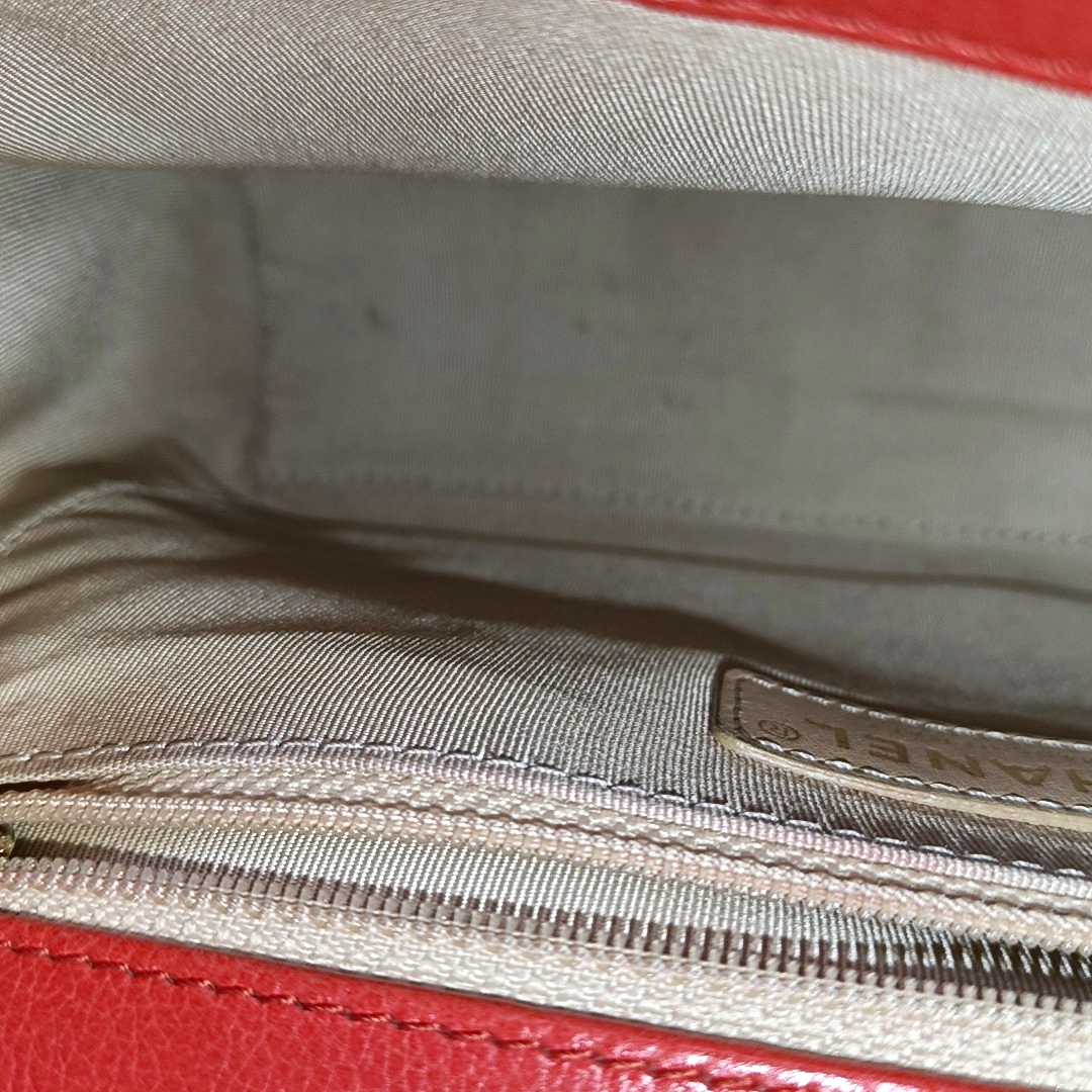 CHANEL LABEL CLICK Small Orange Red Lamb Skin Quilted Crossbody Shoulder Bag Tote Bag Gold Hardware 23 Clasp-(SKU)-945772666