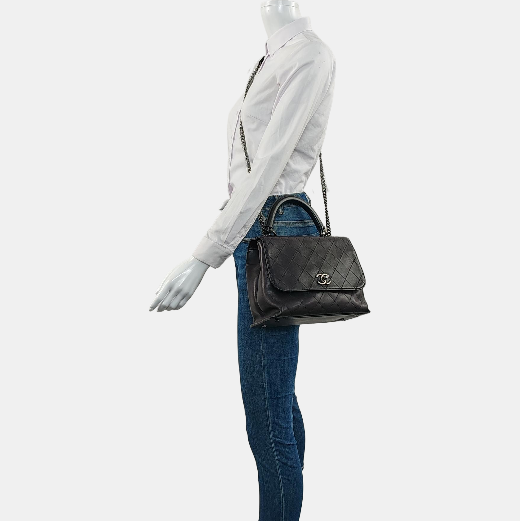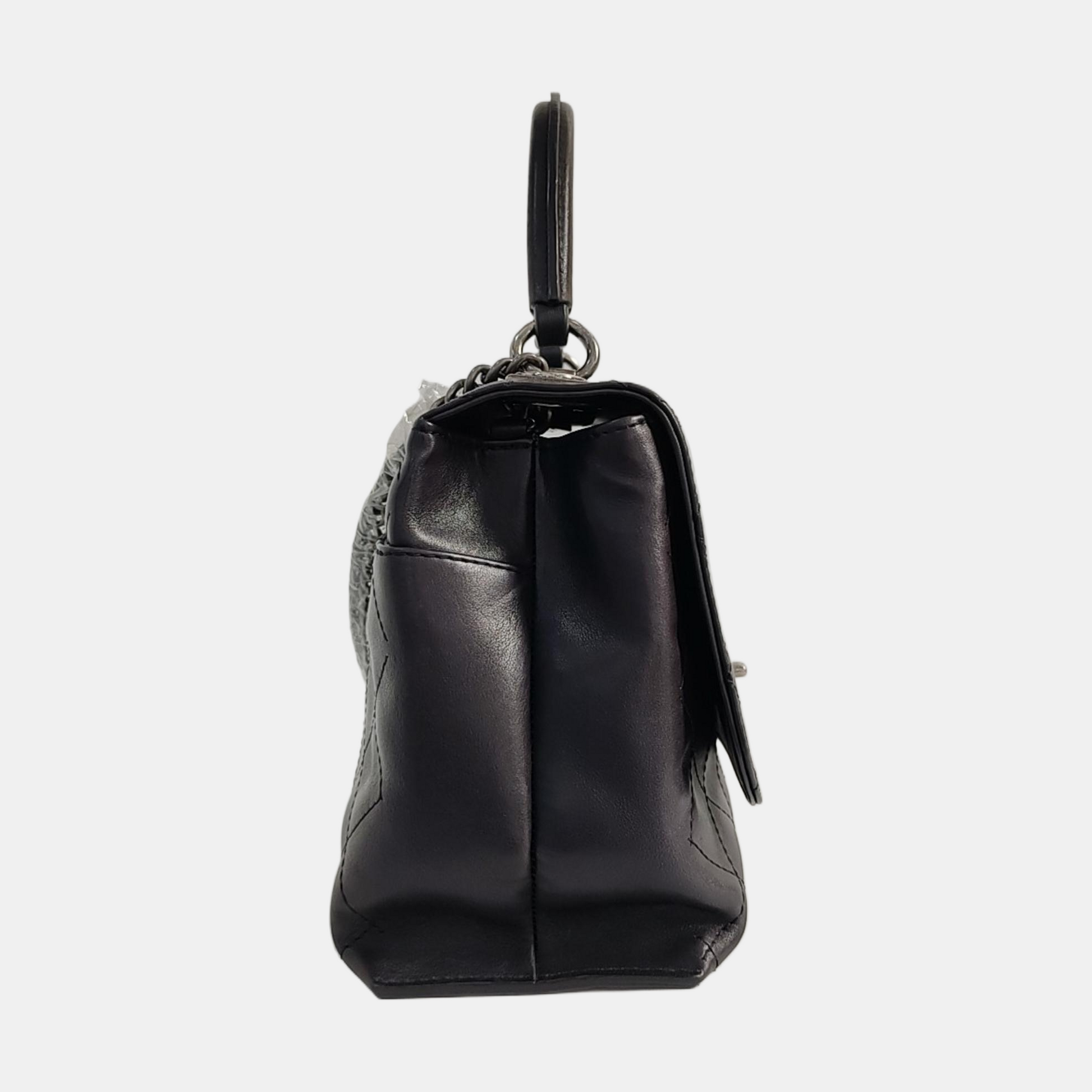 CHANEL LUXURY TOP Small Black Calfskin Quilted Shoulder Bag Tote Crossbody Bag Ruthenium Hardware 22K Clasp-(SKU)-965599174