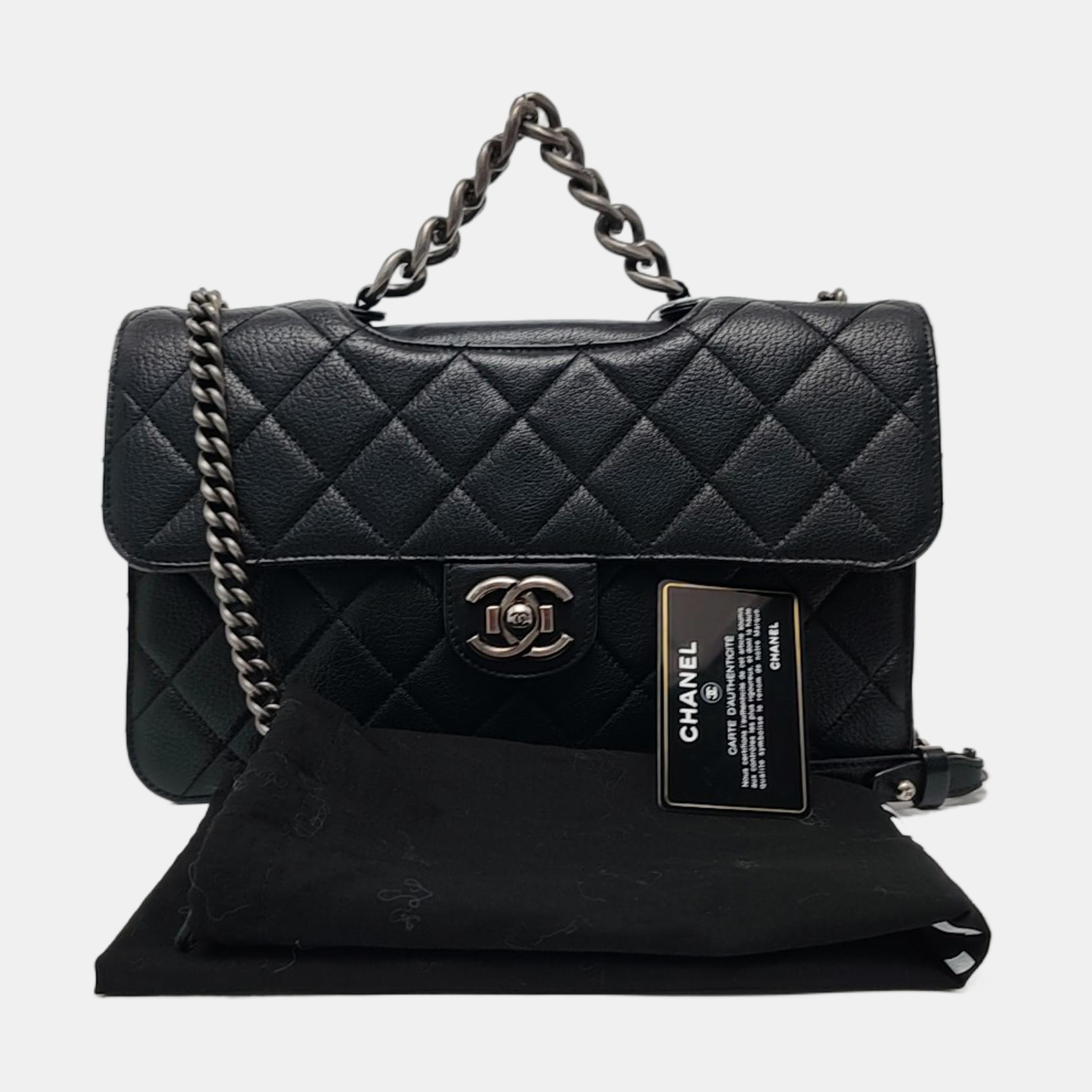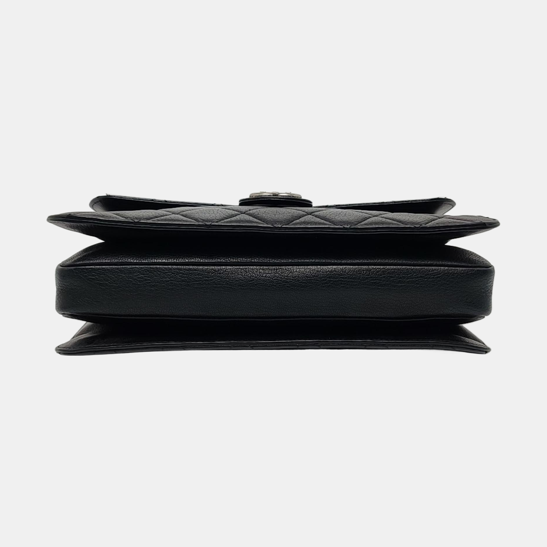 CHANEL PERFECT EDGE Black Lamb Skin Quilted Monogram Crossbody Bag Handbag Shoulder Bag Ruthenium Hardware 21 Clasp-(SKU)-966996971