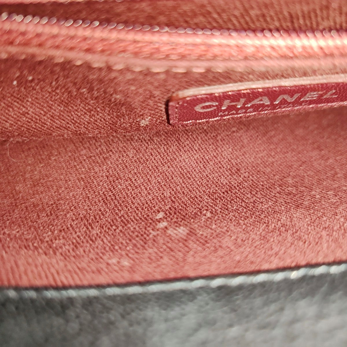 Detailed description: Hardware buckle with moderate scratches、Handheld、Outside of the flip cover、Slight stains on the hardware,Interior、Moderate stains on the back side,Moderate scratches on the inside of the flip cover;Body of the bag、Four corners、Flap Has Undergone Color Restoration