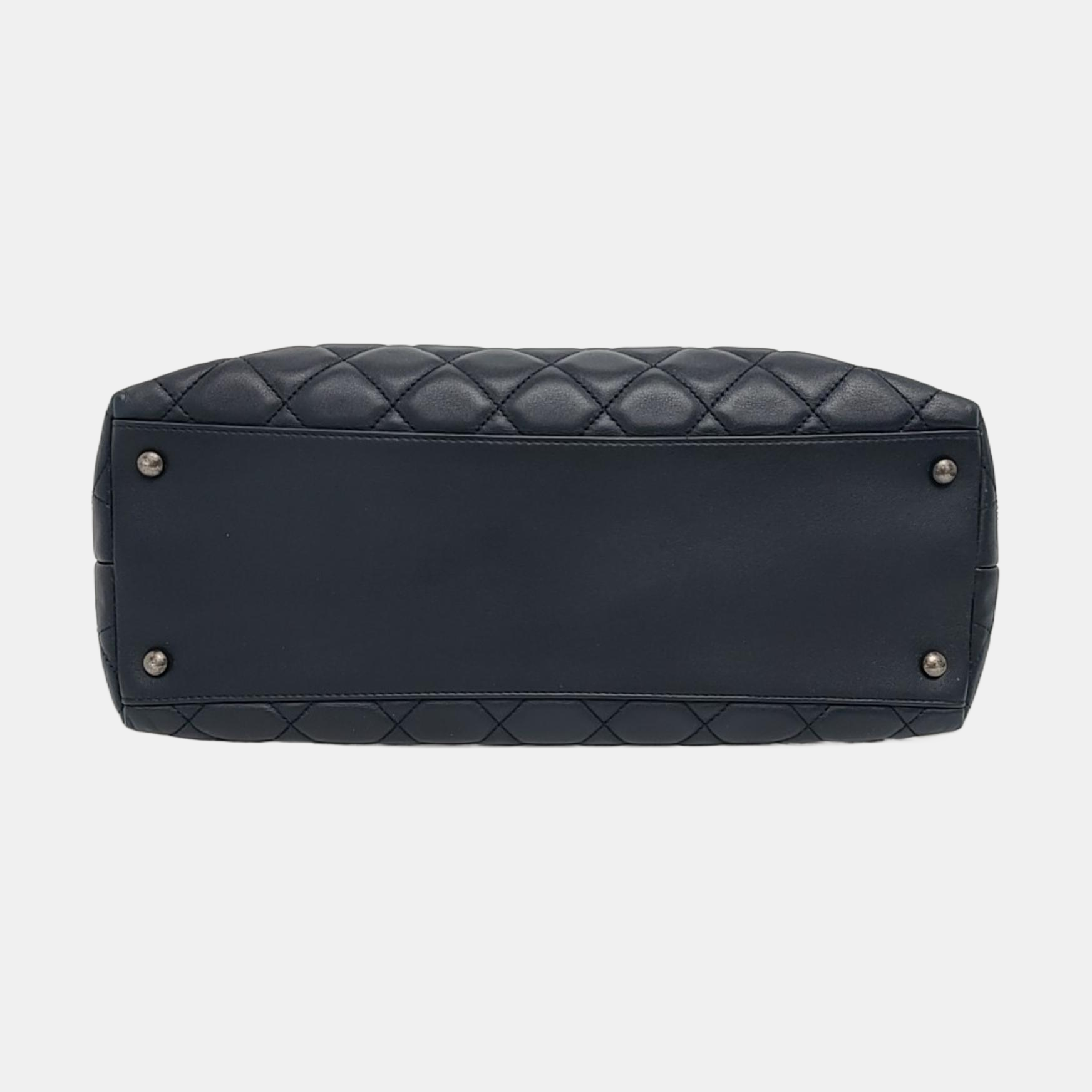 CHANEL PORTOBELLO Blue Calfskin Quilted Matelassé Shoulder Bag Crossbody Bag Handbag Rutenium Hardware 22 Clasp-(SKU)-958286214