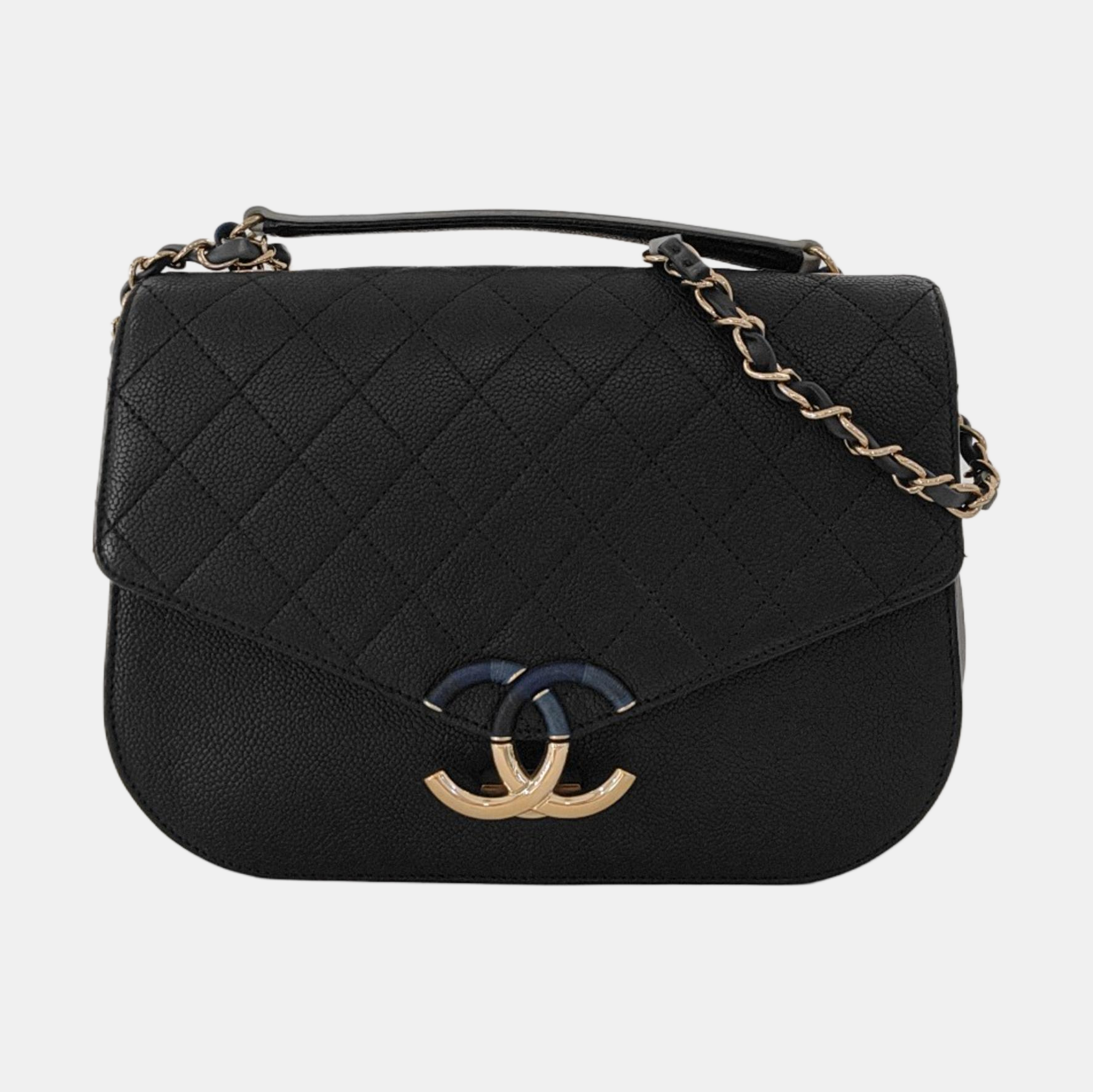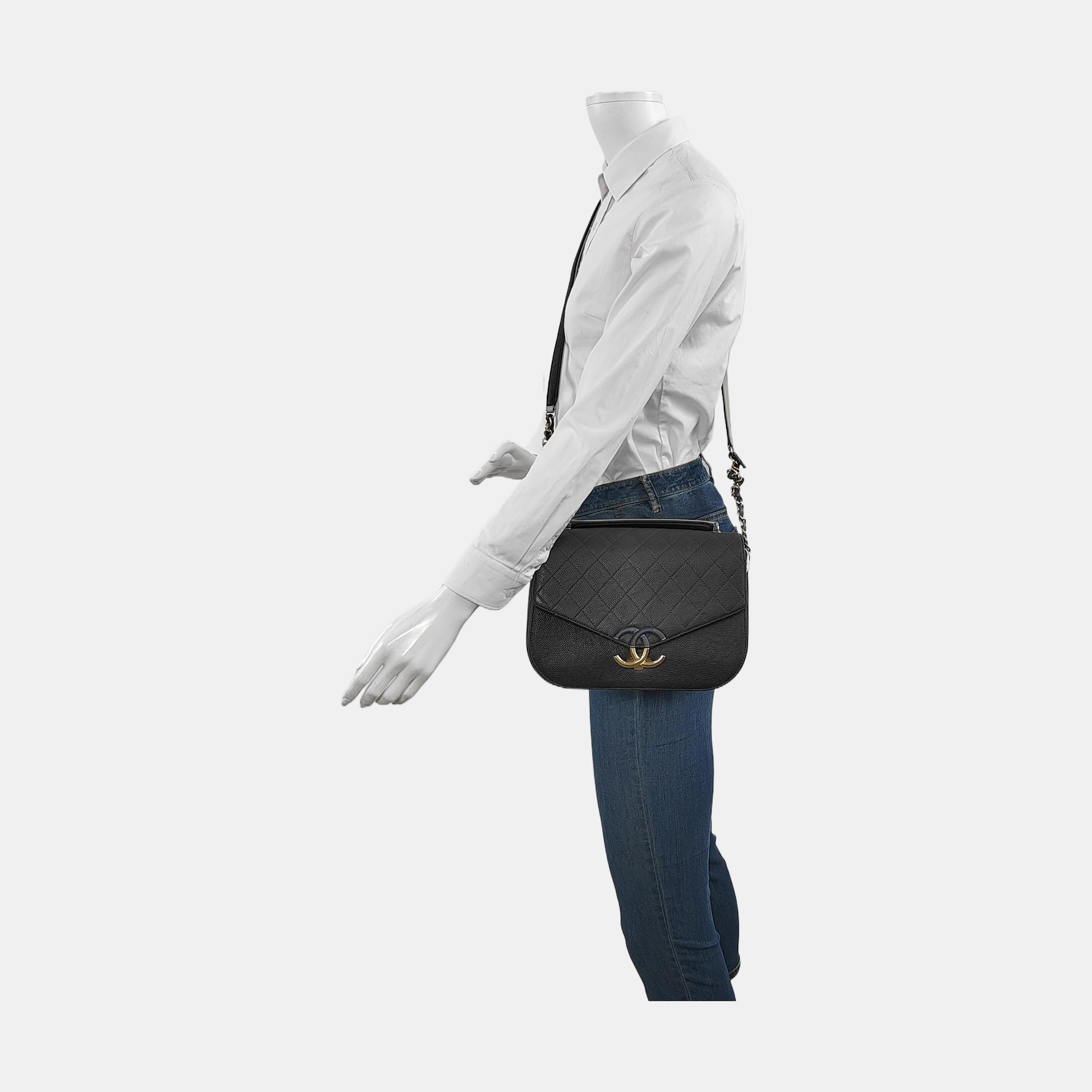 CHANEL THREAD AROUND Medium Black Calfskin Quilted Chevron Single Shoulder Bag Handbag Detachable Strap-(SKU)-954093937
