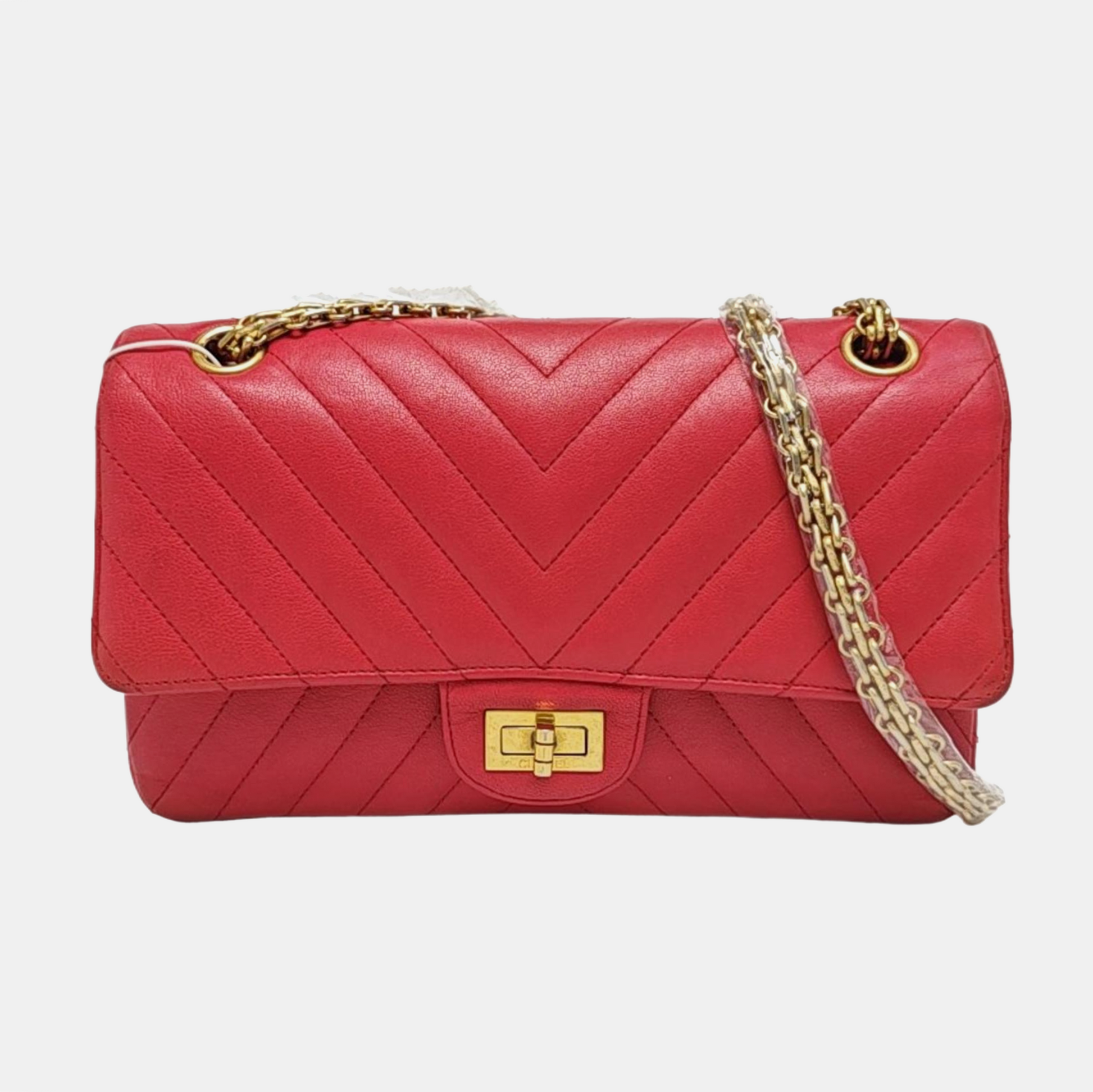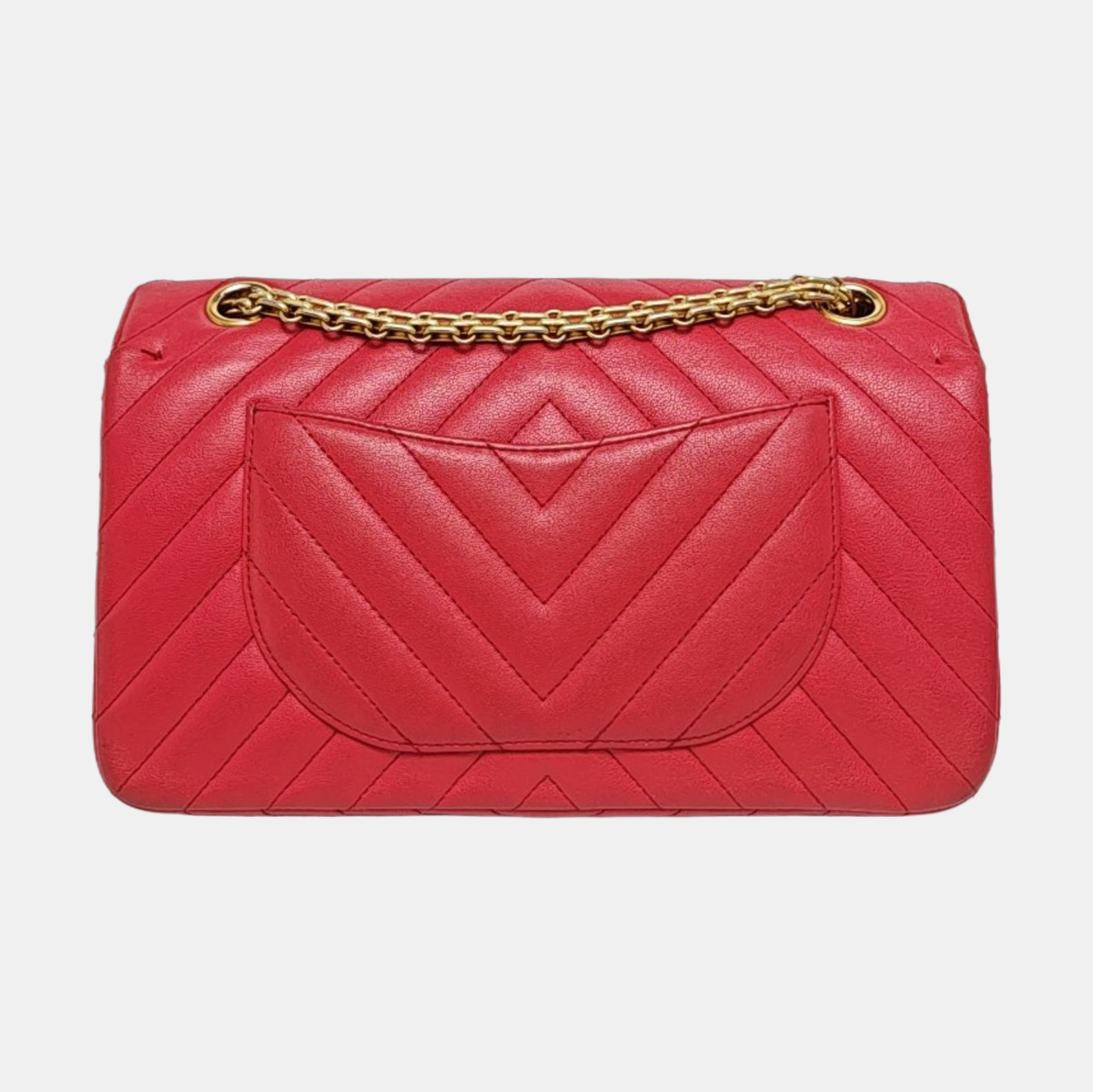 CHANEL 2.55 Small, red lamb skin, quilted V pattern, chain strap, gold hardware, size 23-(SKU)-971107723