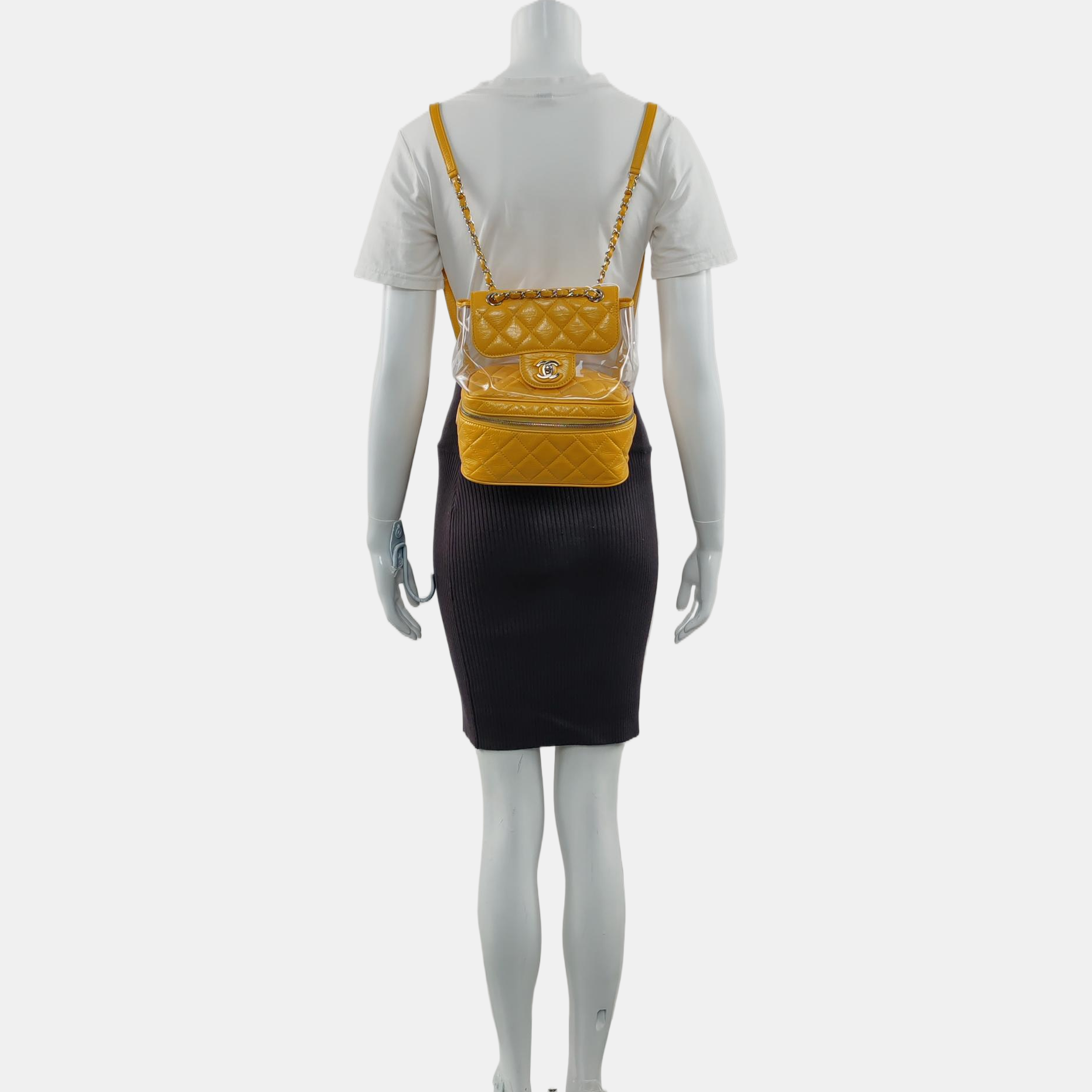 CHANEL AQUARIUM Medium Yellow Calfskin Quilted Backpack, Handbag with Silver Hardware, 26 compartments-(SKU)-964845024