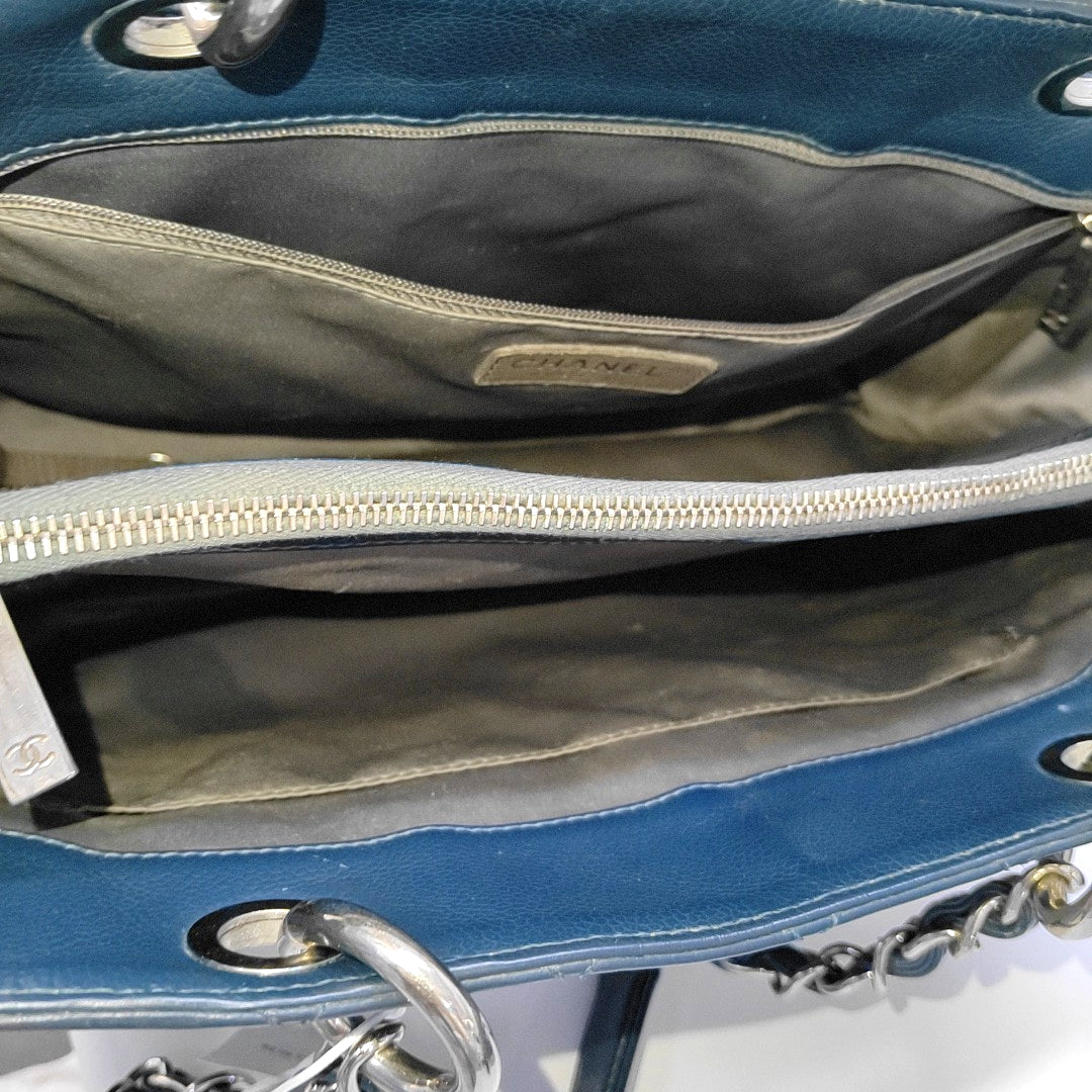 CHANEL CHANEL GST Large Blue Calfskin Quilted Matelassé Shoulder Bag Silver Hardware 17 Clasp-(SKU)-966451937