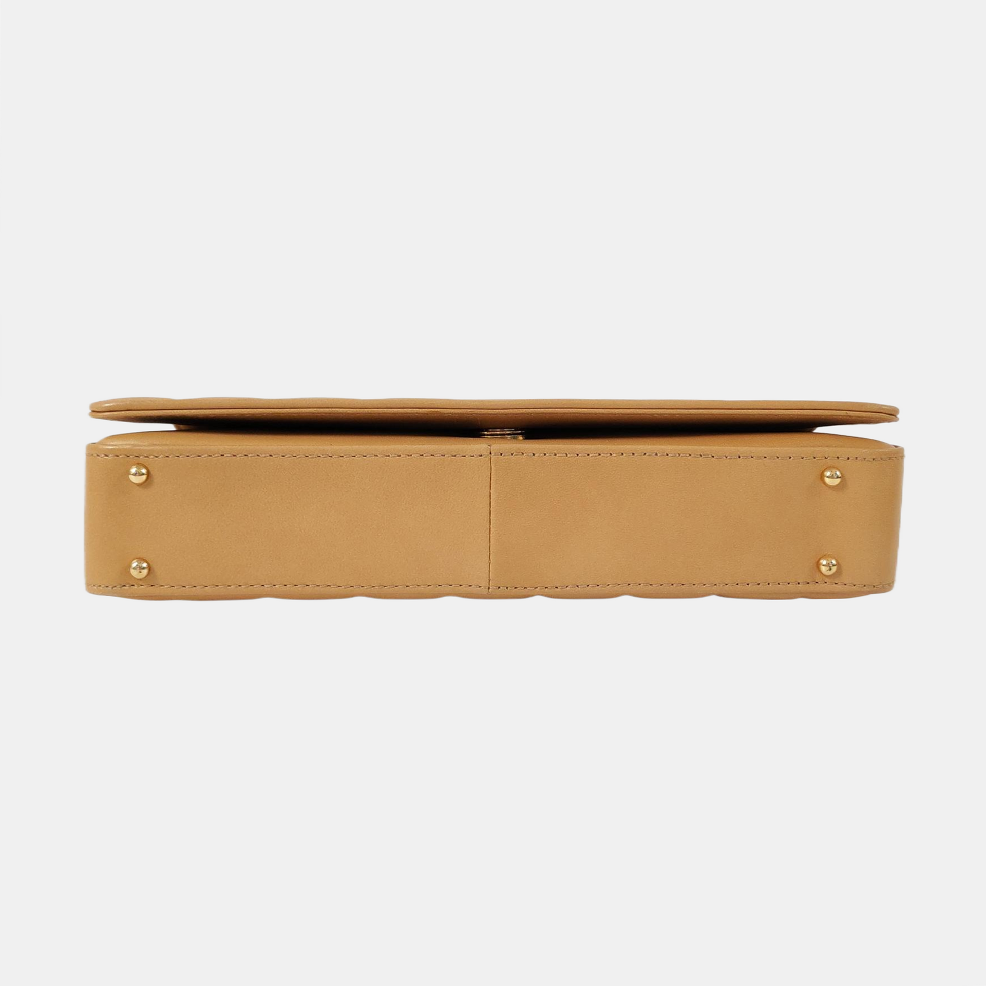 CHANEL CHOCOLATE BAR Khaki Lamb Skin Ice Grain Single Shoulder Bag with Gold Hardware, 8 Clasp-(SKU)-967802267
