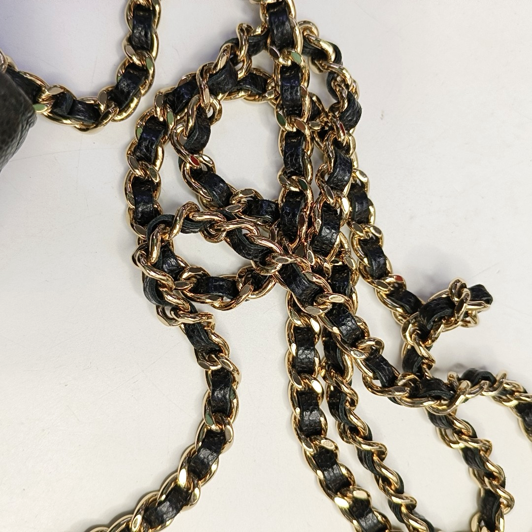 CHANEL CLASSIC FLAP Black Calfskin Quilted Cannage Shoulder Bag Gold Hardware Removable Strap-(SKU)-952640054