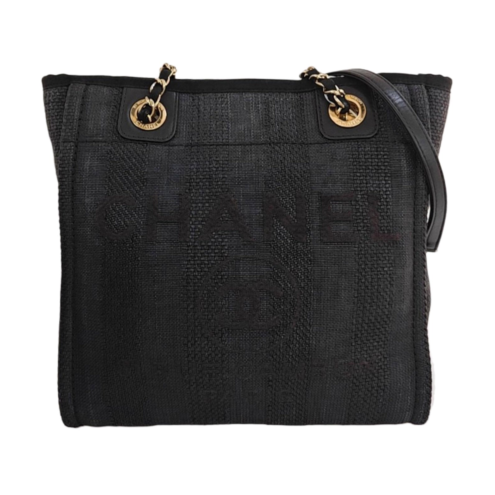 CHANEL DEAUVILLE Black Canvas Single Shoulder Bag Gold Hardware 29 Clasp-(SKU)-970344417