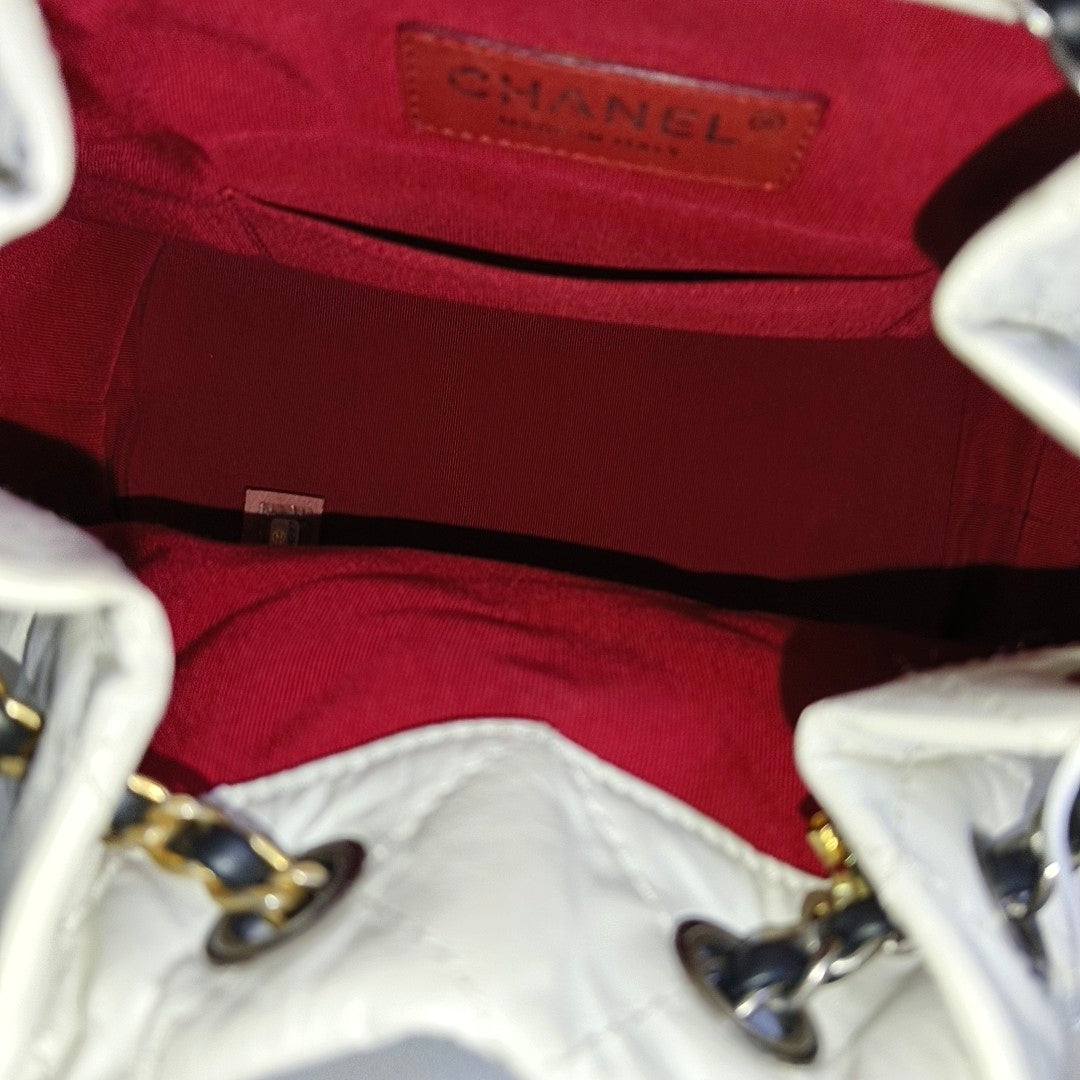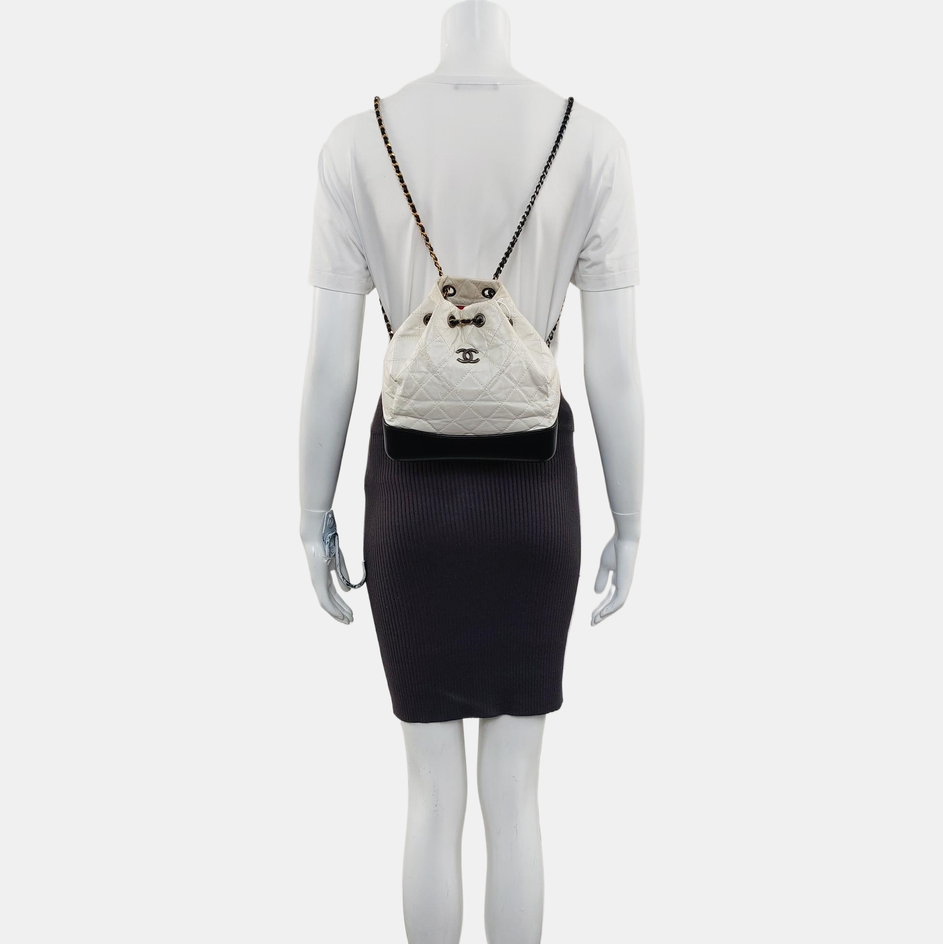 CHANEL GABRIELLE small size white leather quilted Gabrielle bag, backpack with gold ruthenium hardware and 24 chain links-(SKU)-968674094