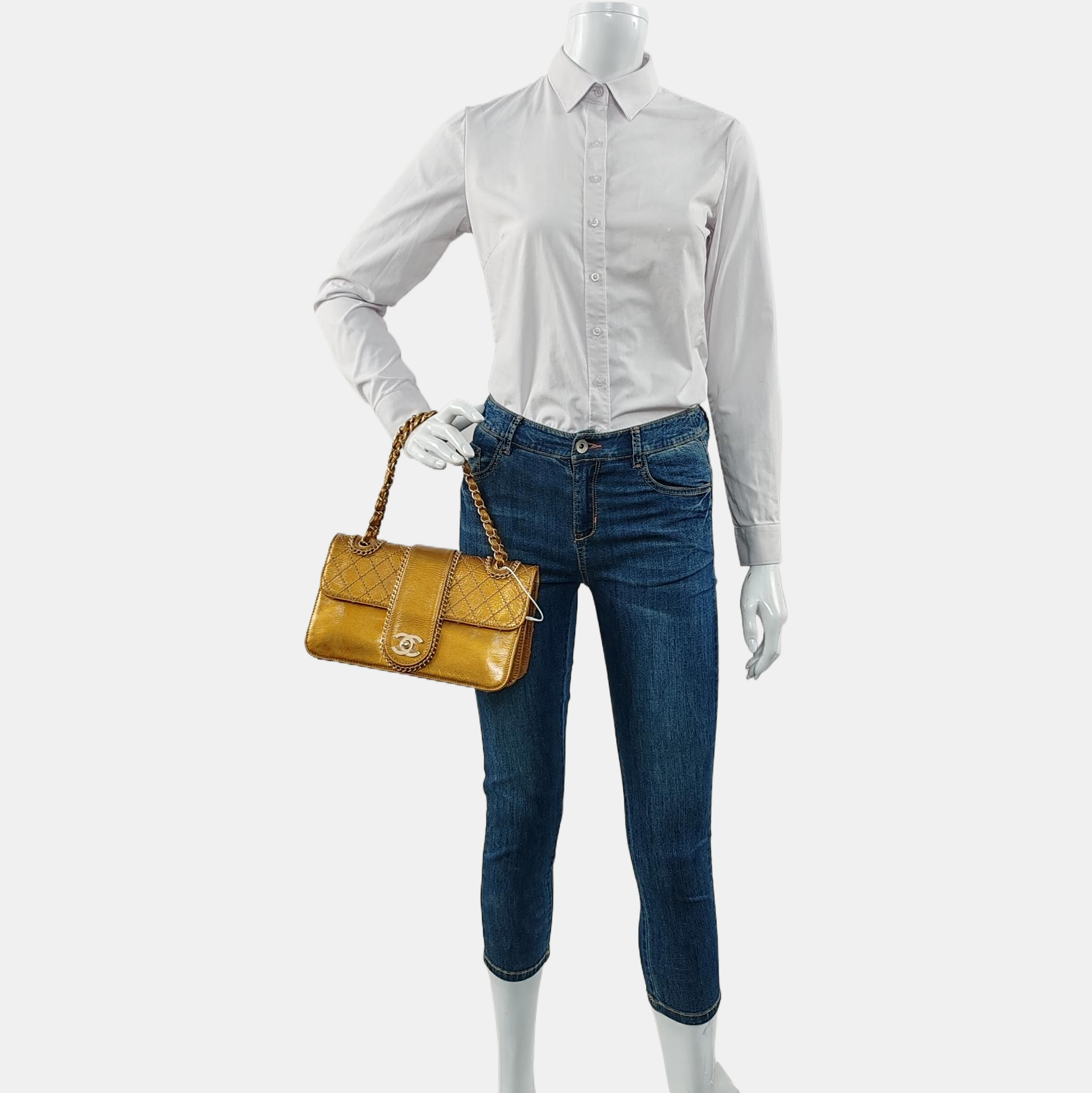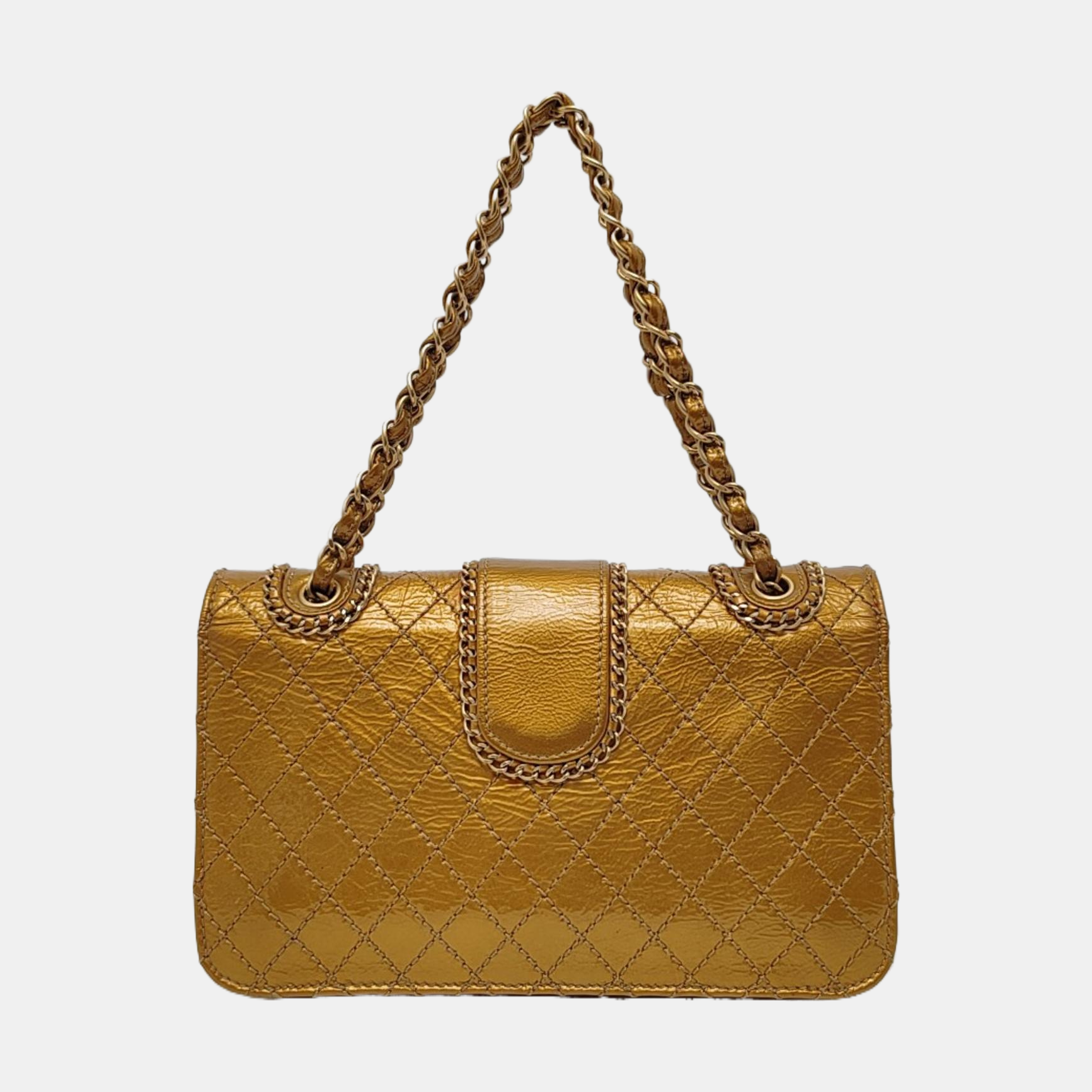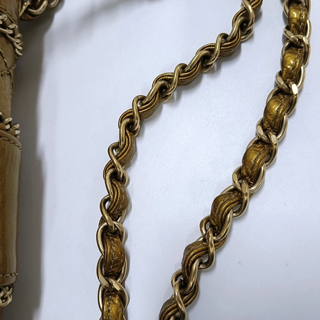 CHANEL MADISON Yellow Patent Leather Quilted Shoulder Bag, Gold Hardware, 11 Compartments-(SKU)-965813701