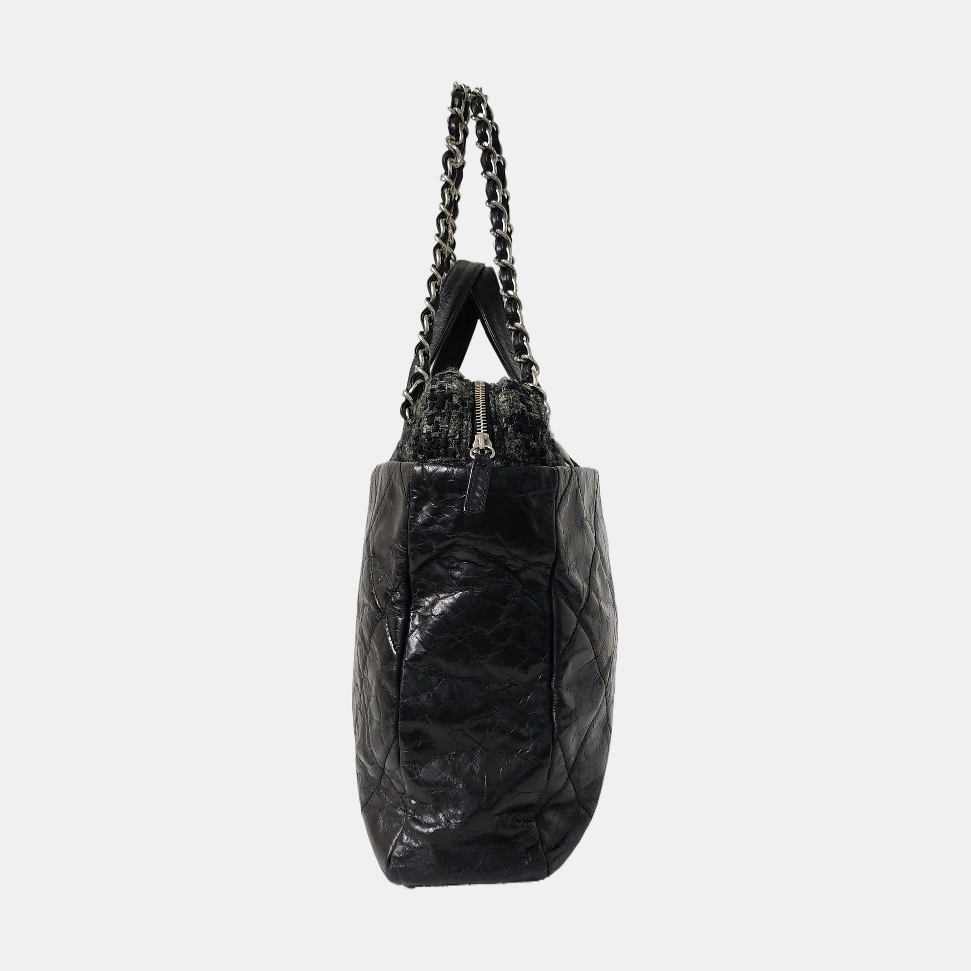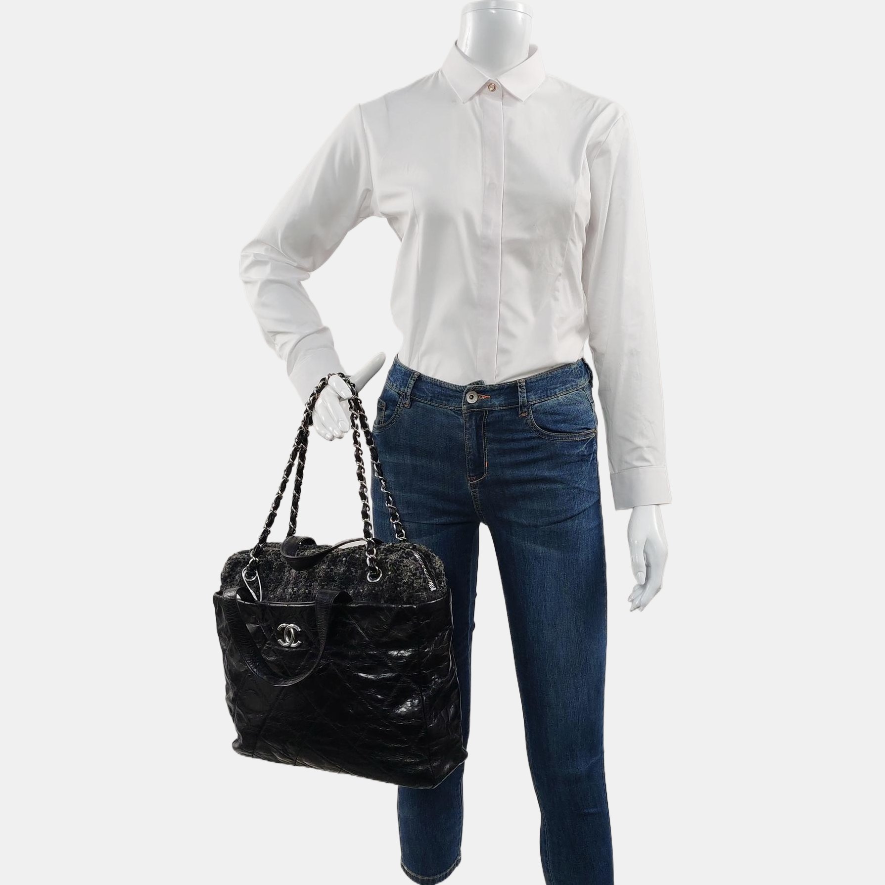 CHANEL PORTOBELLO Black Leather Diamond Quilted Single Shoulder Bag with Silver Hardware 13 opening-(SKU)-967525500