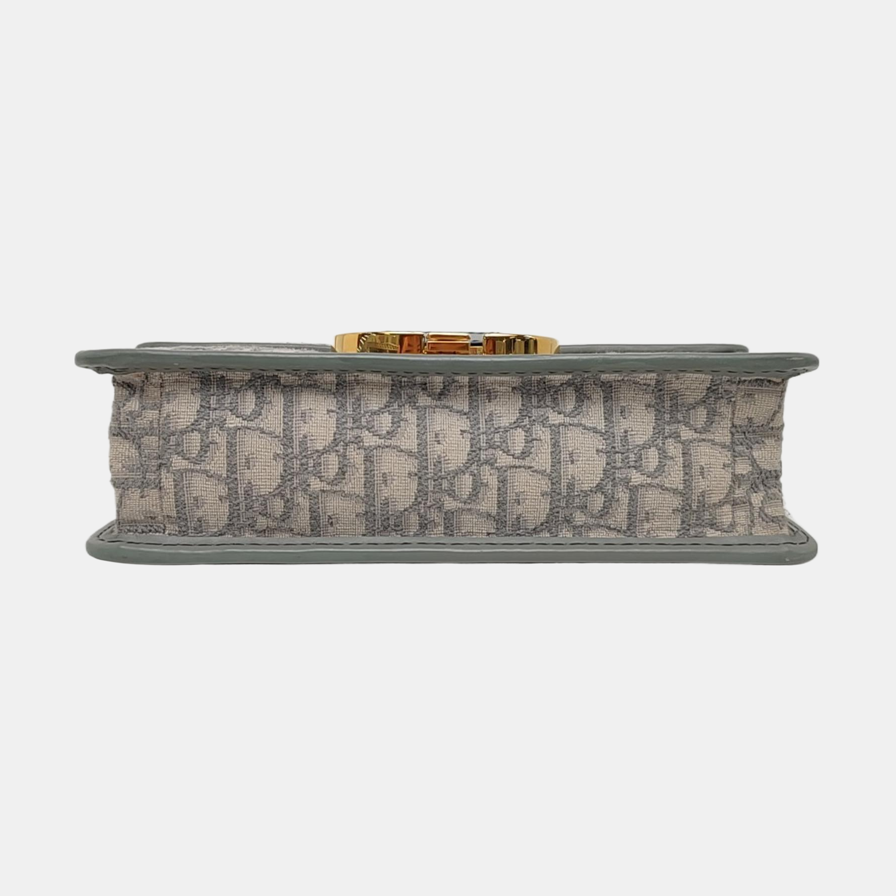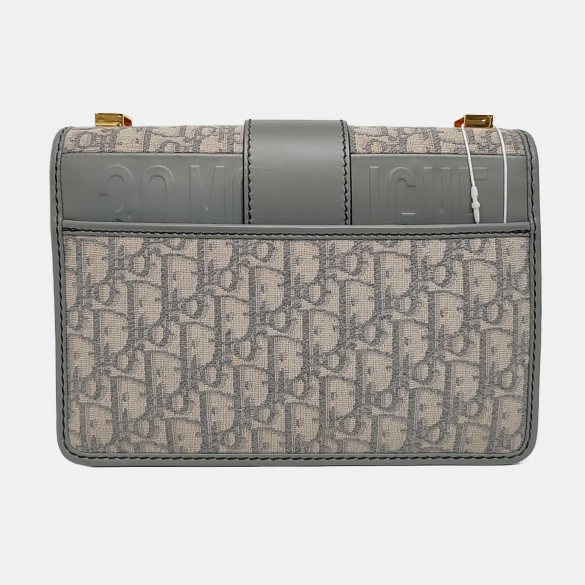 DIOR 30 Montaigne Light Gray Canvas Monogram Embroidered Montaigne Bag Crossbody Shoulder Bag Gold Hardware Removable Strap-(SKU)-968741552