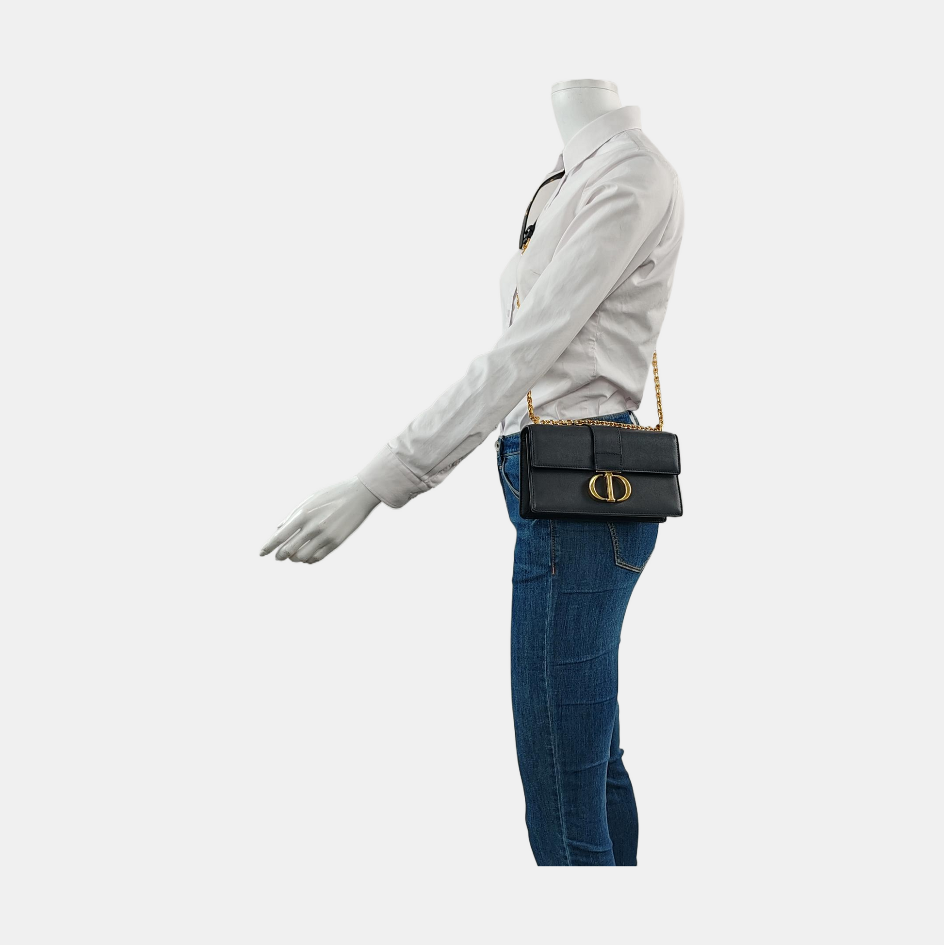 DIOR 30 Montaigne East-West Black Leather Montaigne Bag with Gold Hardware and Detachable Strap-(SKU)-957272257