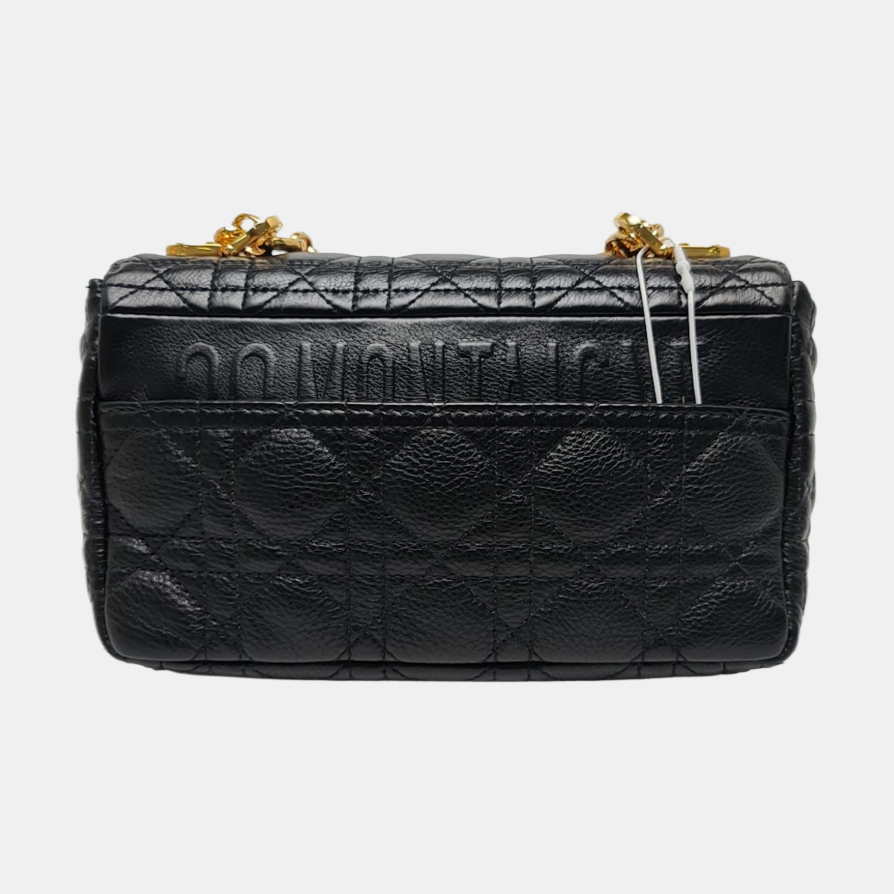 DIOR Dior Caro Small Black Leather Cannage Quilted Single Shoulder Bag Crossbody Bag Golden Hardware Removable Strap-(SKU)-970717484