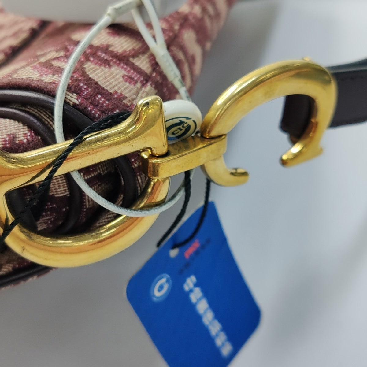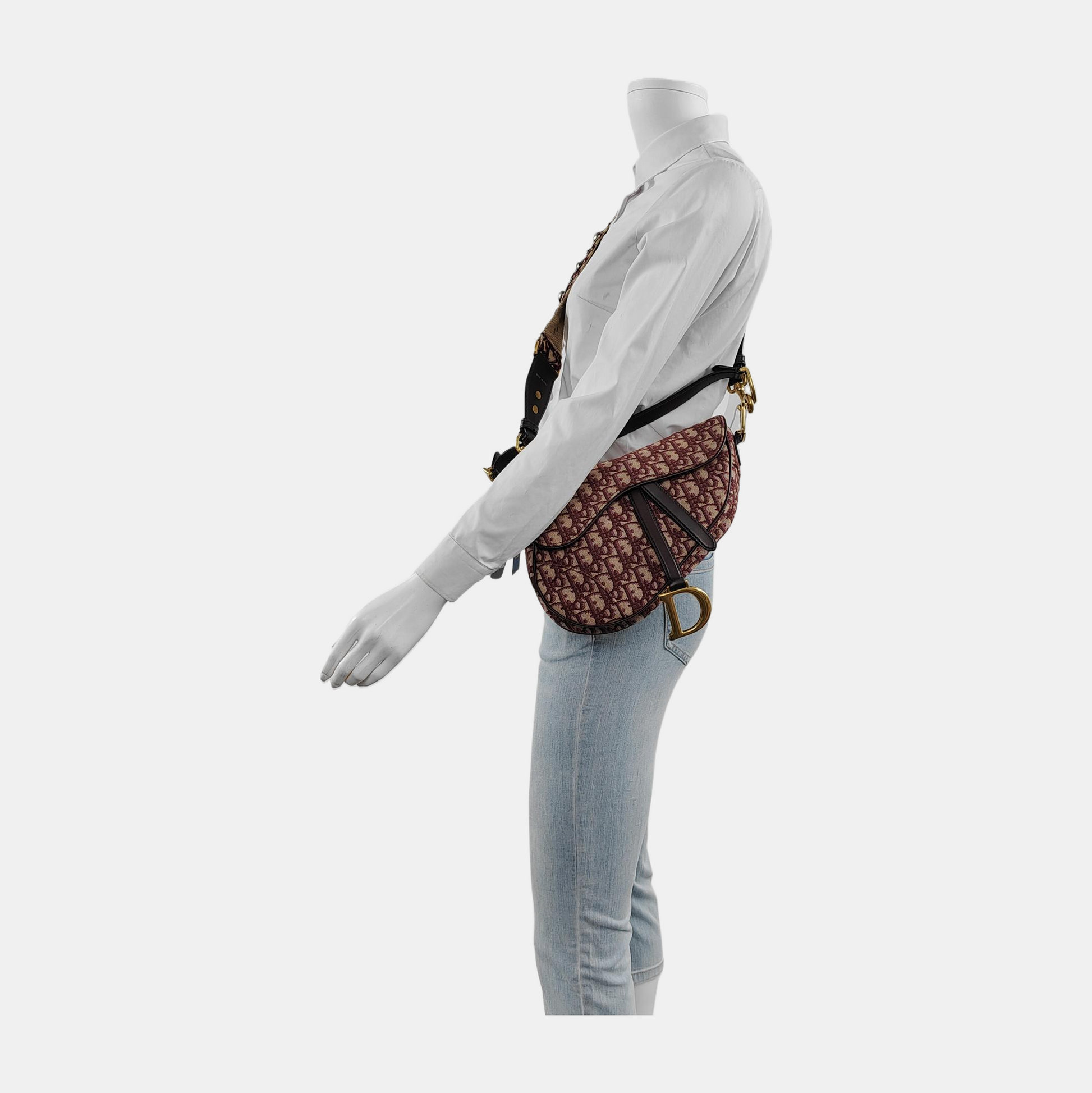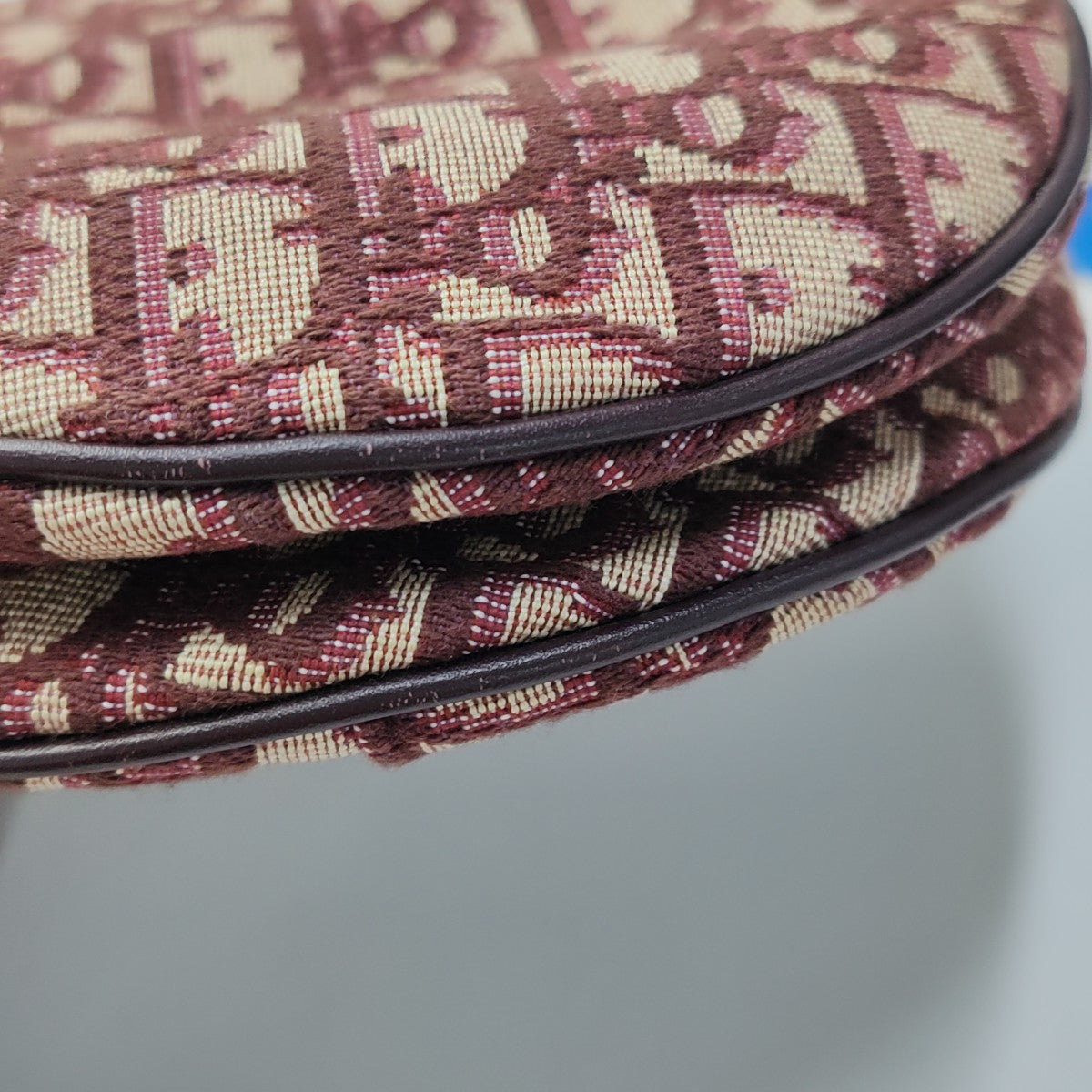 DIOR Saddle Small Burgundy Canvas Monogram Saddle Bag Crossbody Shoulder Bag with Gold Hardware Removable Strap-(SKU)-943857438