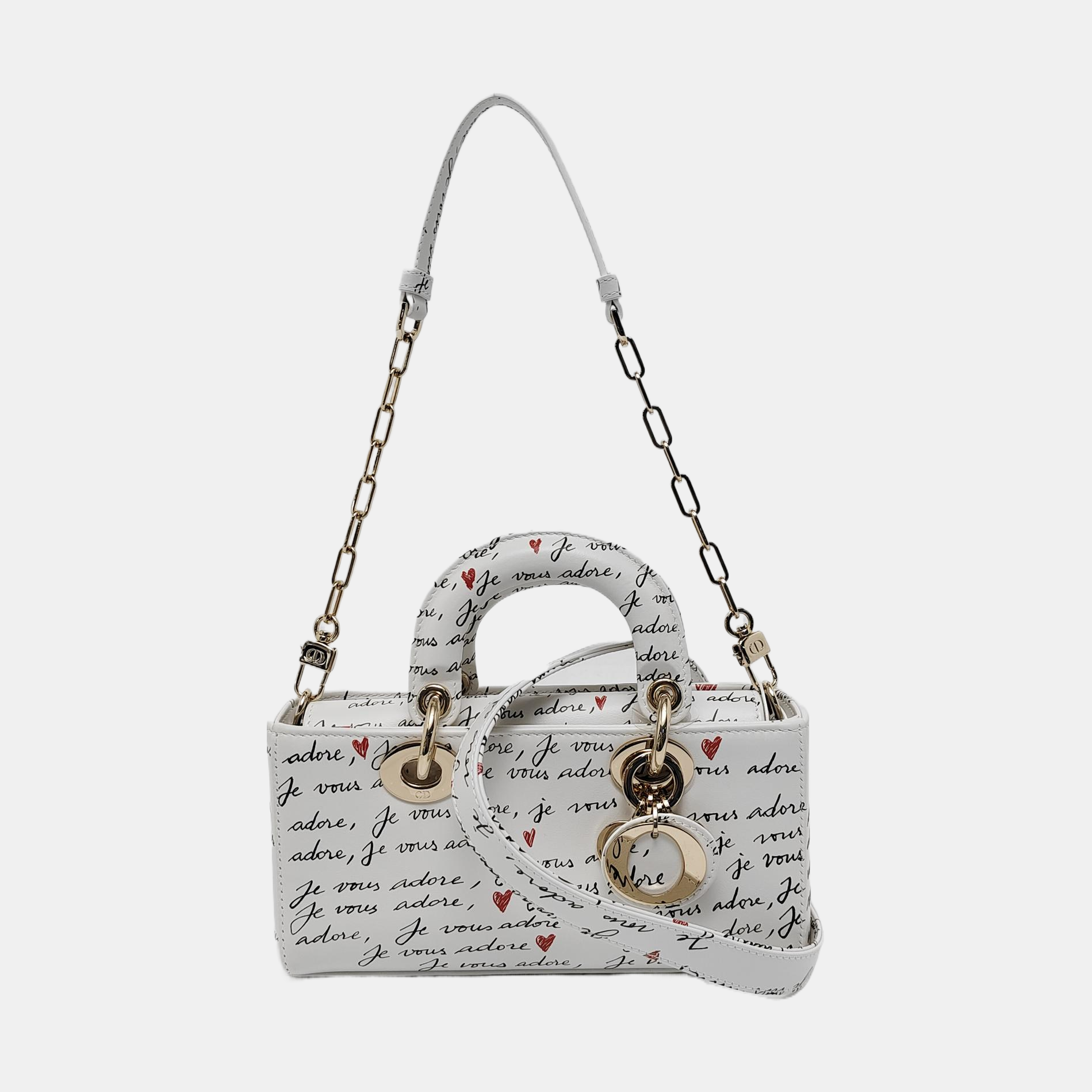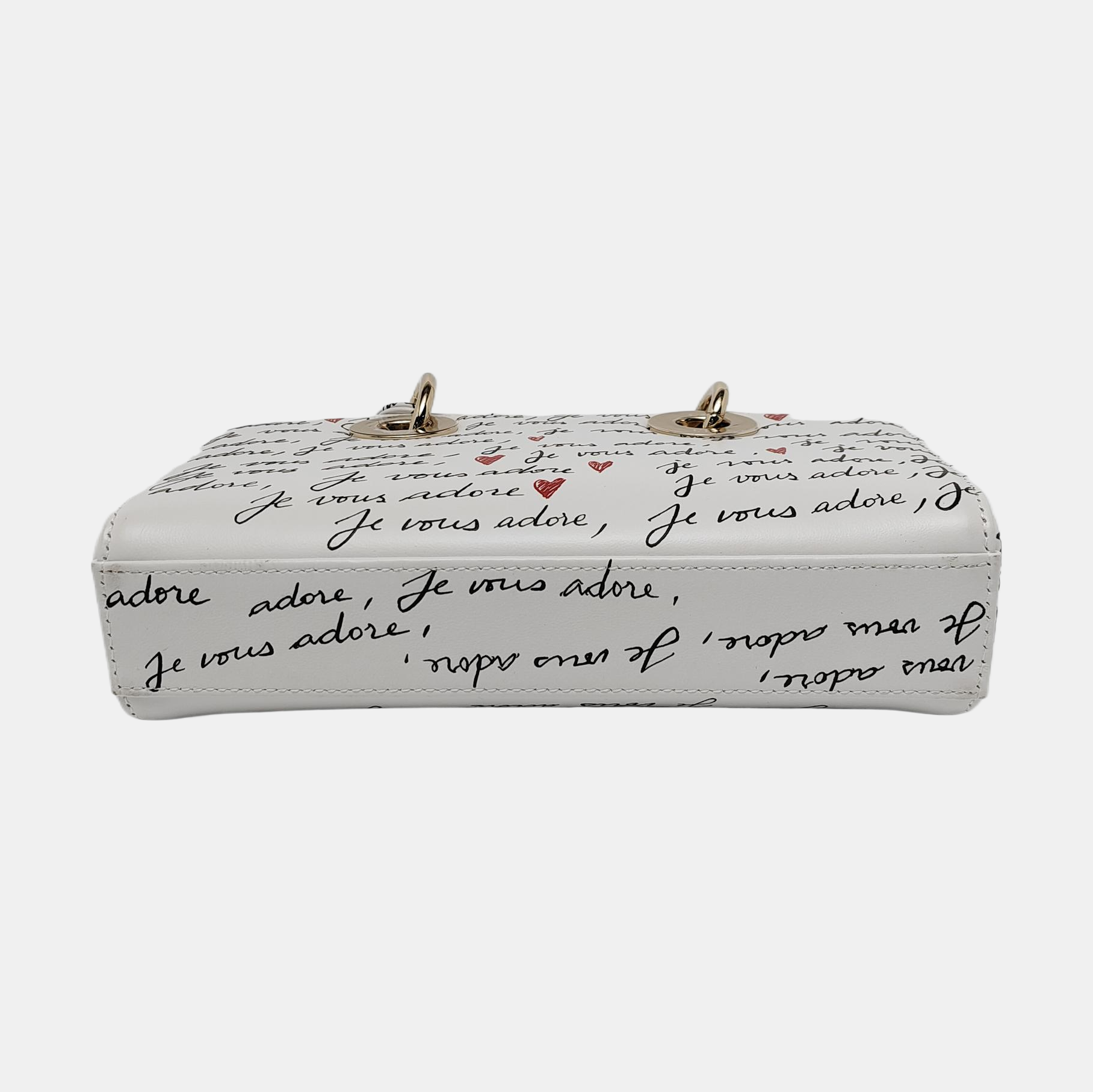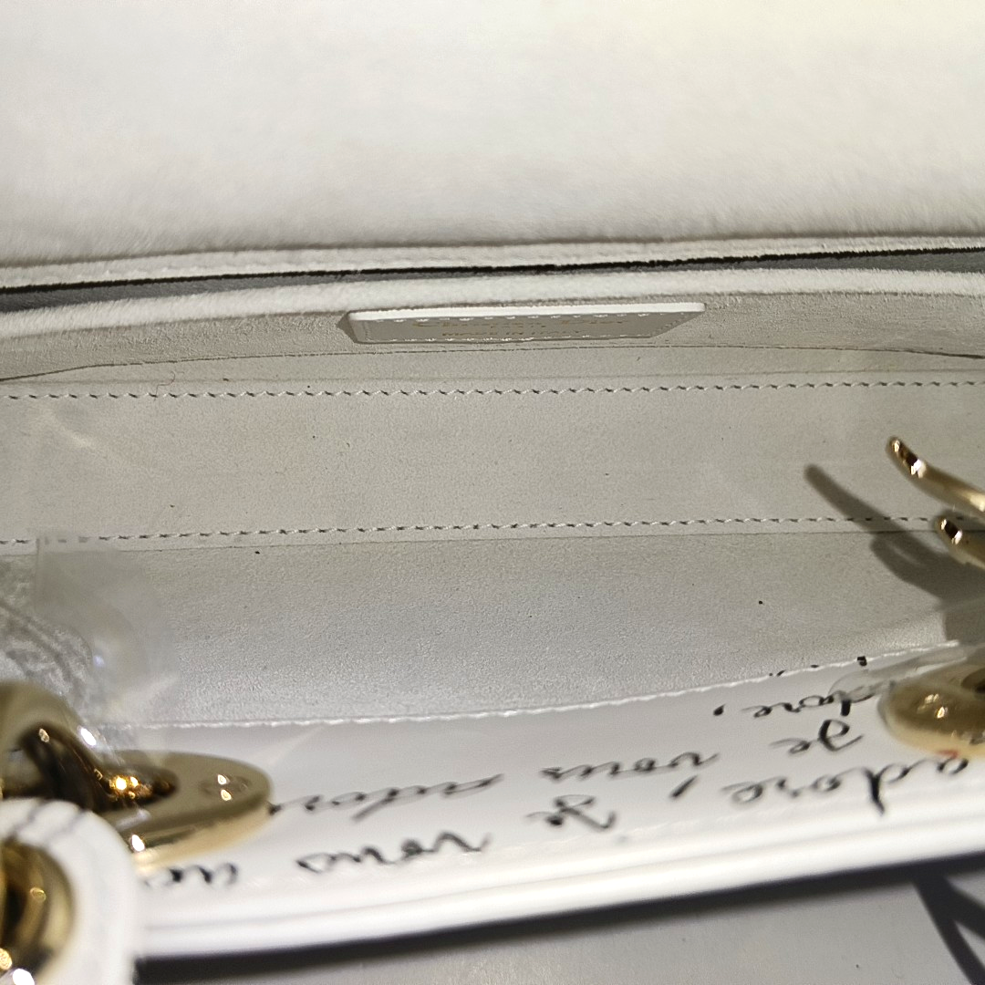 DIOR Lady D-Joy Small White Leather Printed Crossbody Bag Single Shoulder Bag with Gold Red Hardware 2 Removable Shoulder Straps-(SKU)-950358762