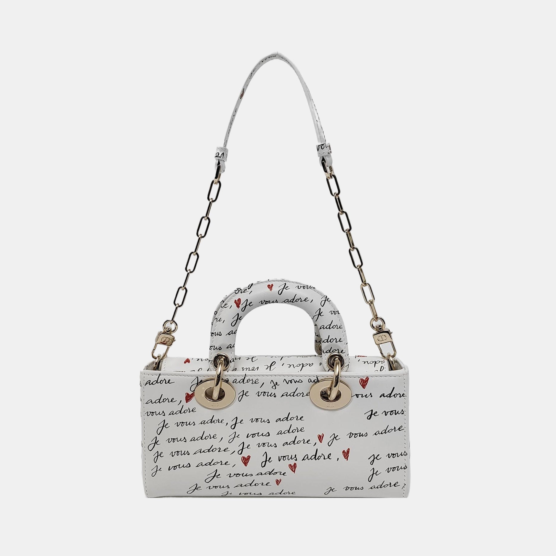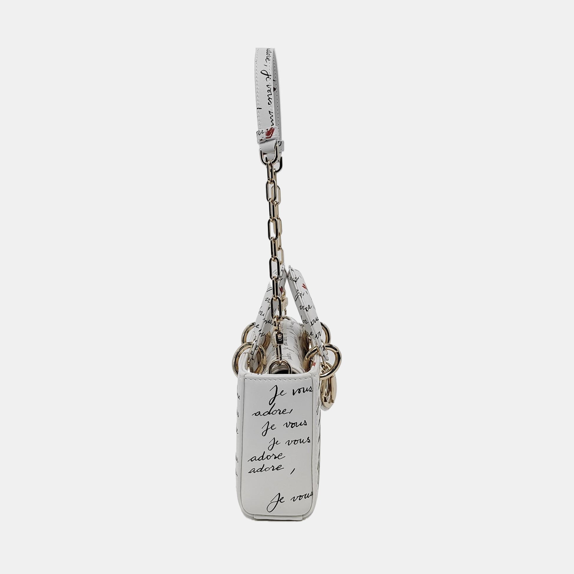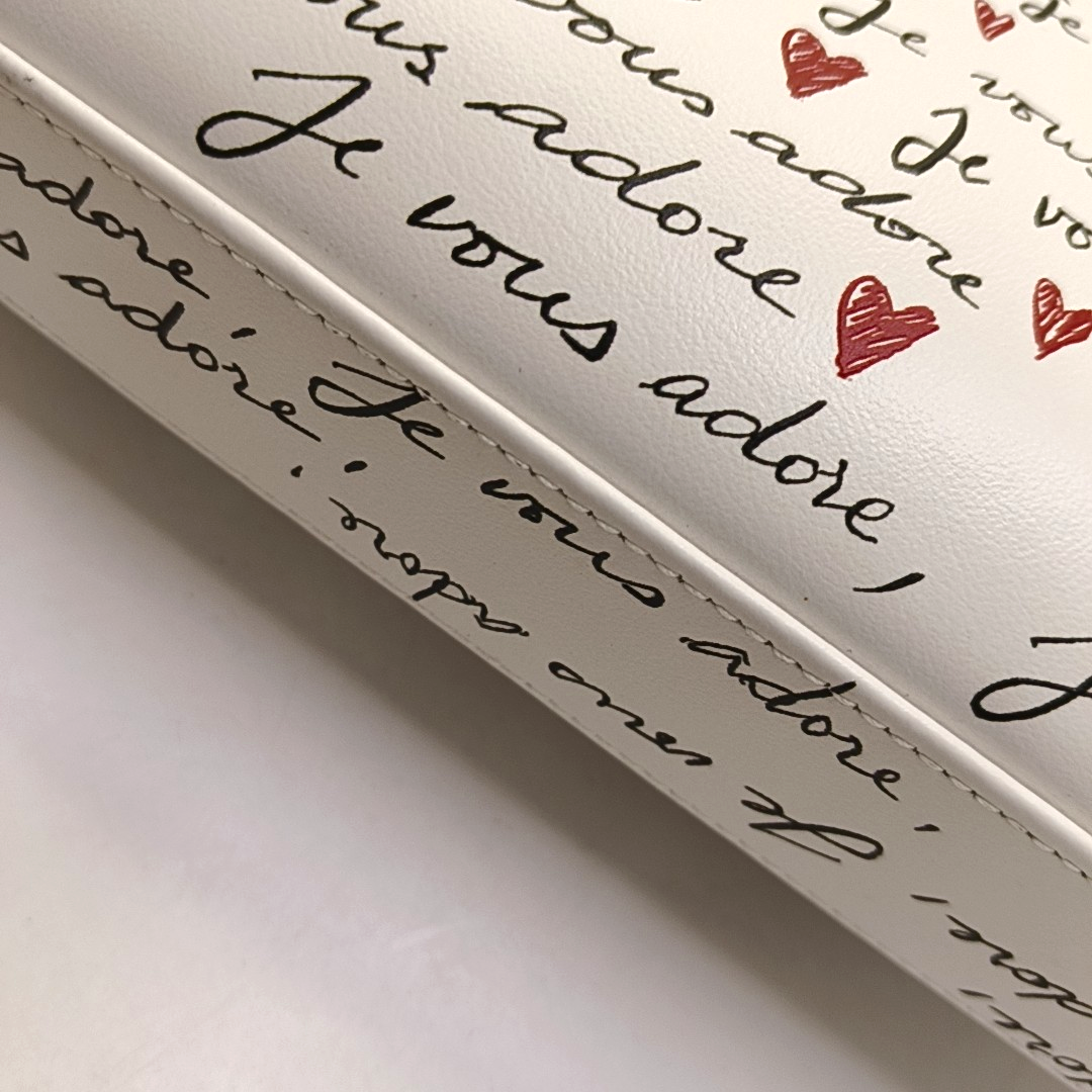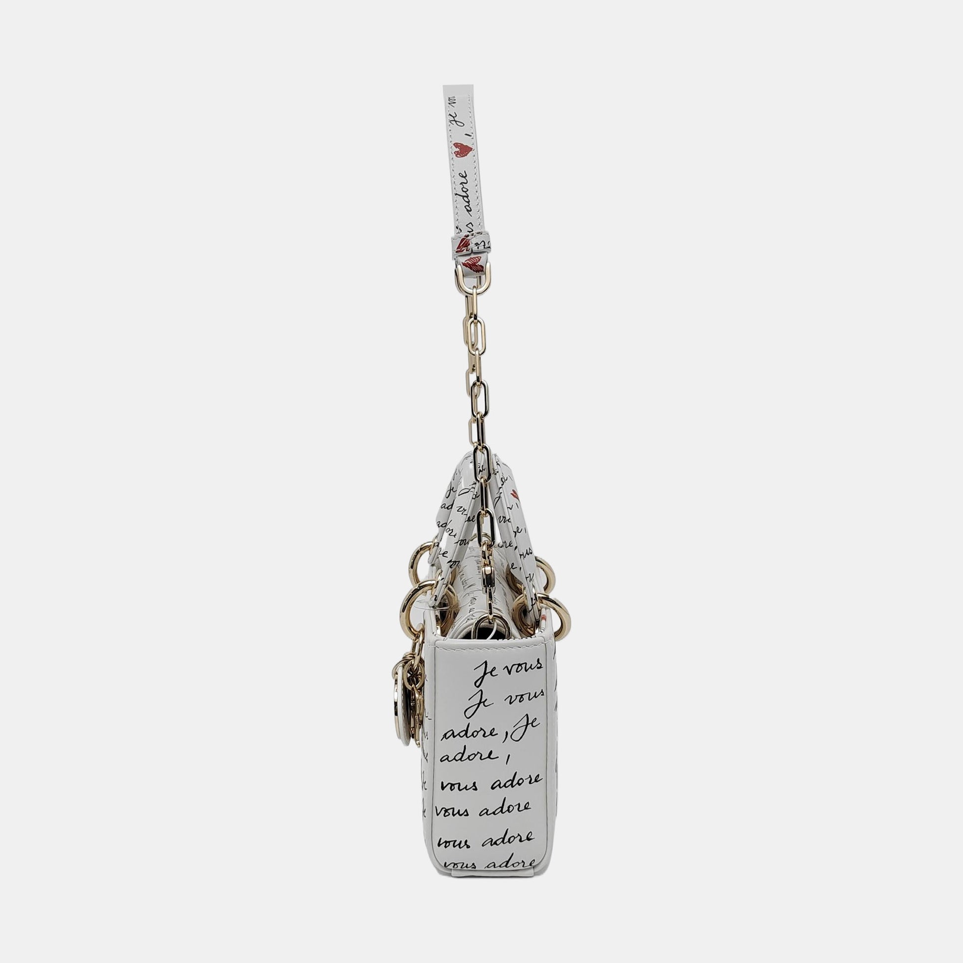 DIOR Lady D-Joy Small White Leather Printed Crossbody Bag Single Shoulder Bag with Gold Red Hardware 2 Removable Shoulder Straps-(SKU)-950358762