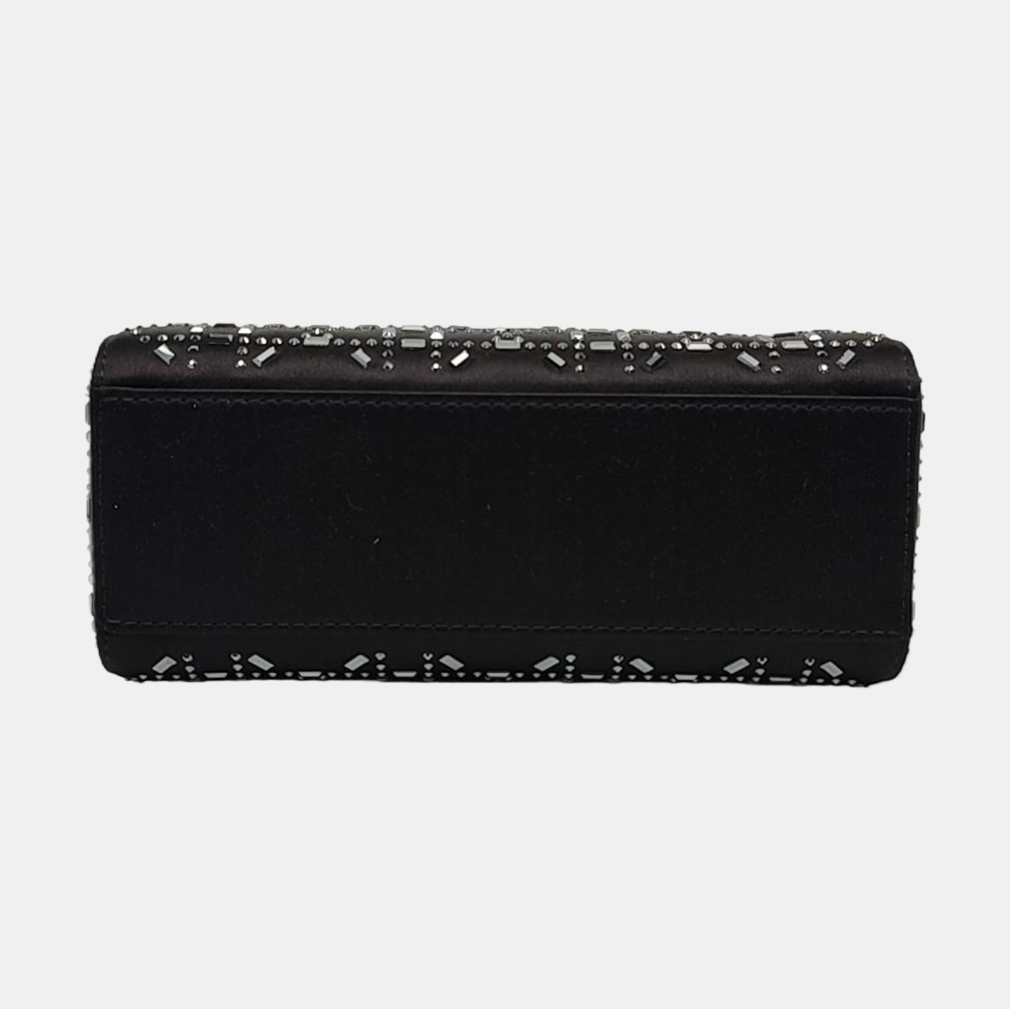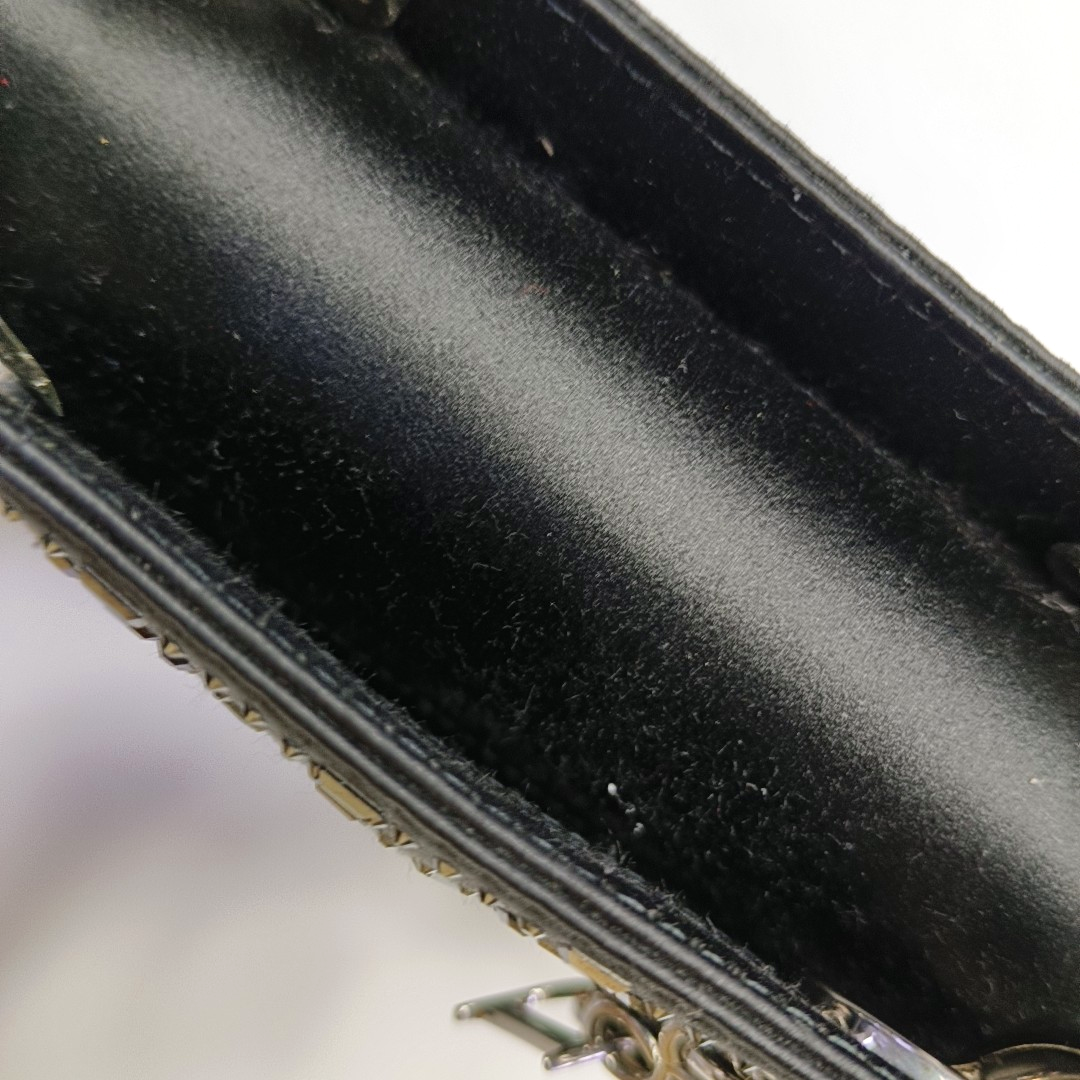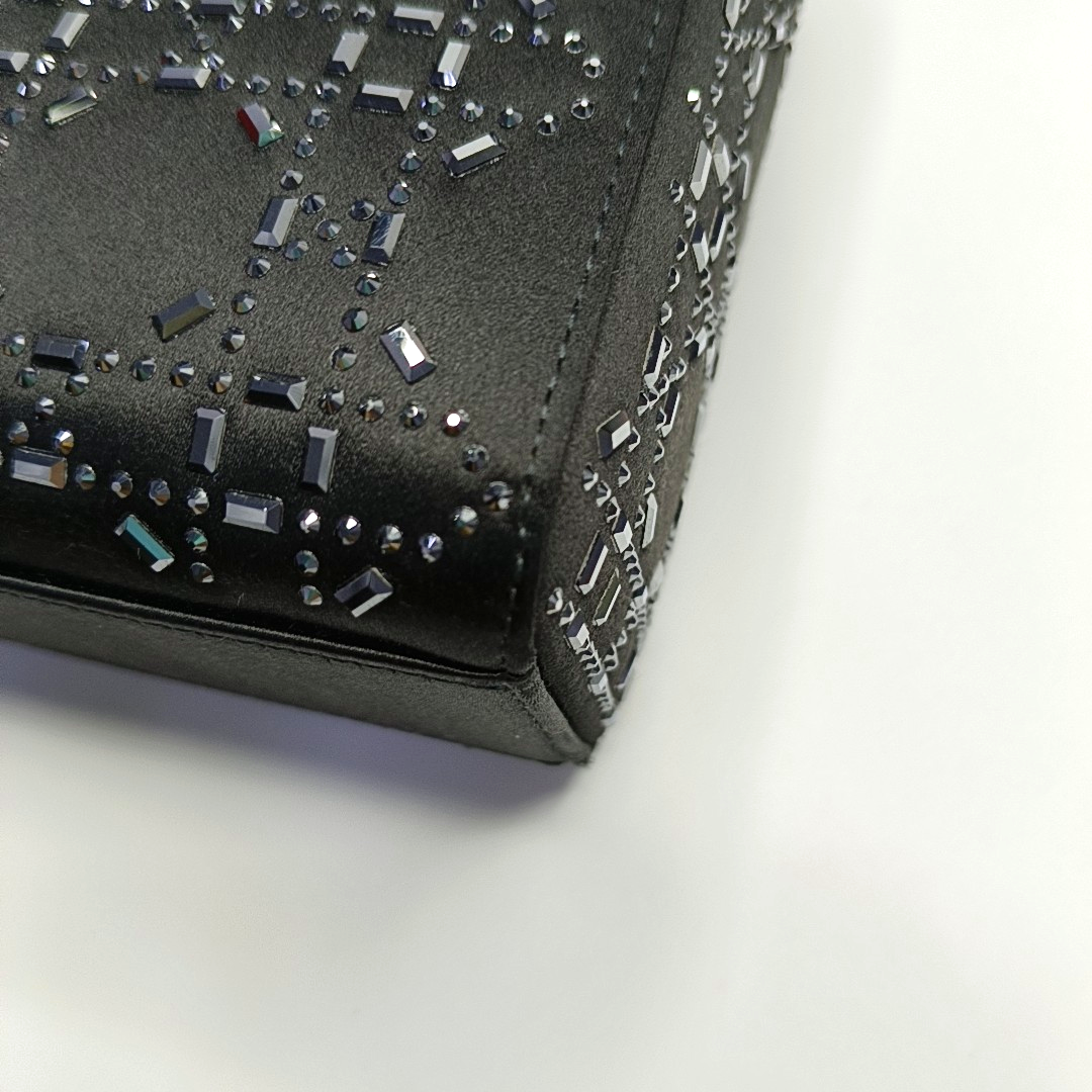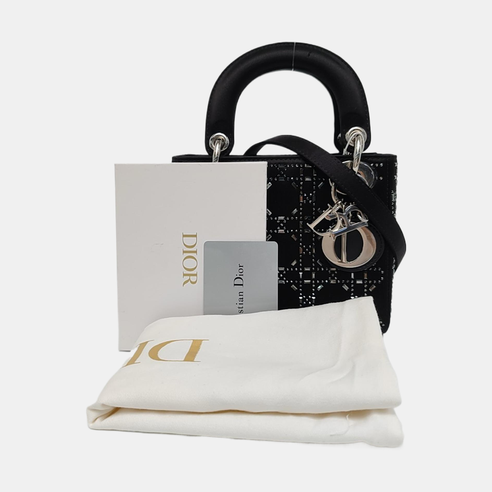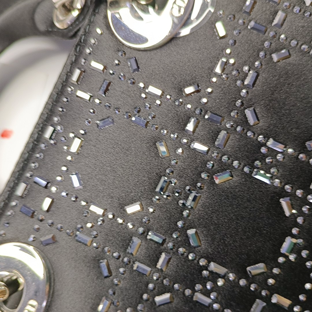 DIOR Lady Dior Mini Black Satin Cannage Quilted Three-Panel Hobo Bag Handbag Crossbody Bag Silver Hardware Removable Shoulder Strap-(SKU)-962820040