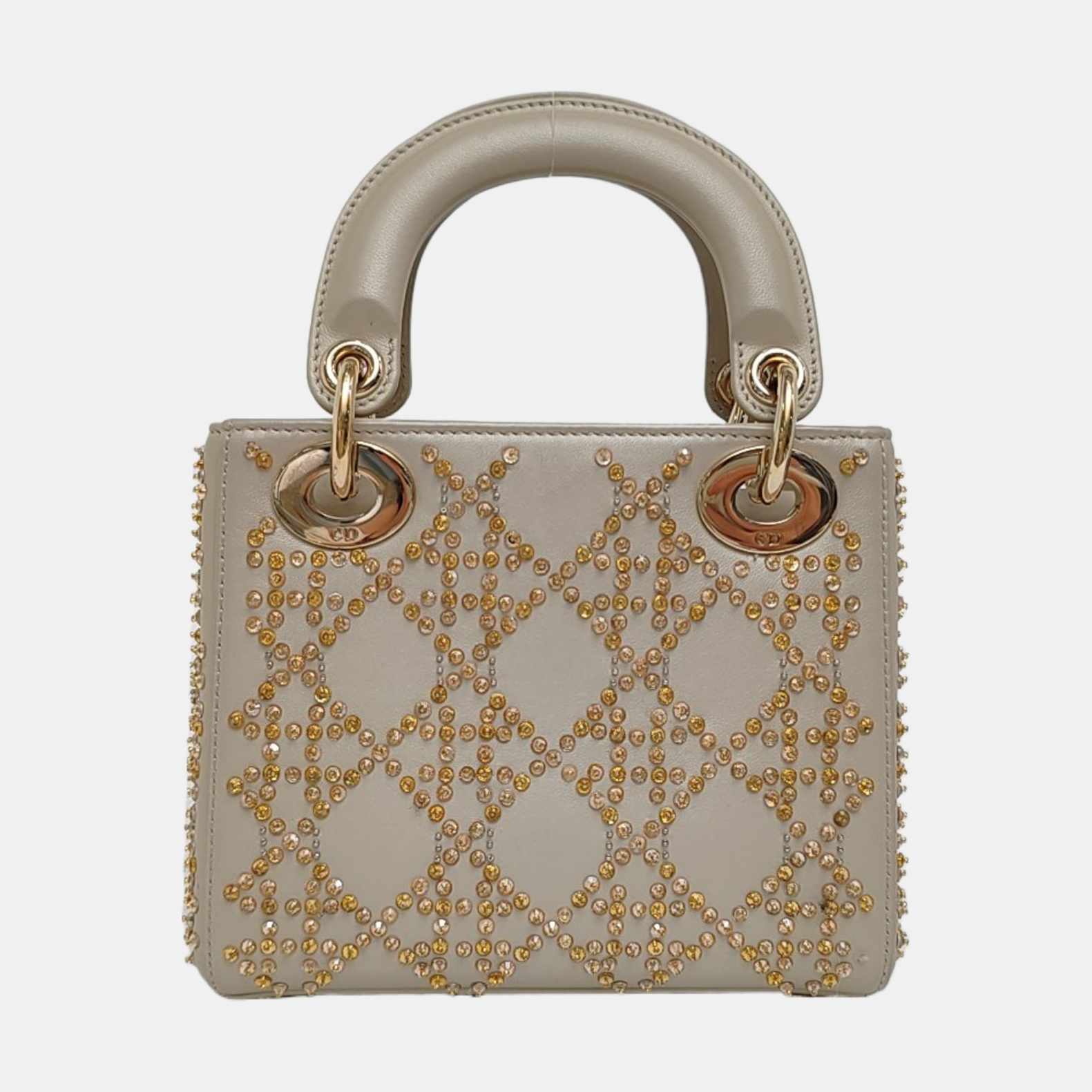 DIOR Lady Dior mini champagne lamb skin Cannage pattern three-compartment crossbody bag, shoulder bag with gold hardware and detachable strap-(SKU)-963332269