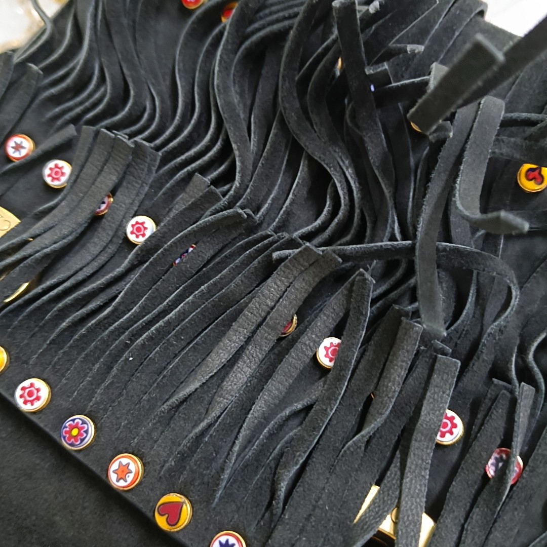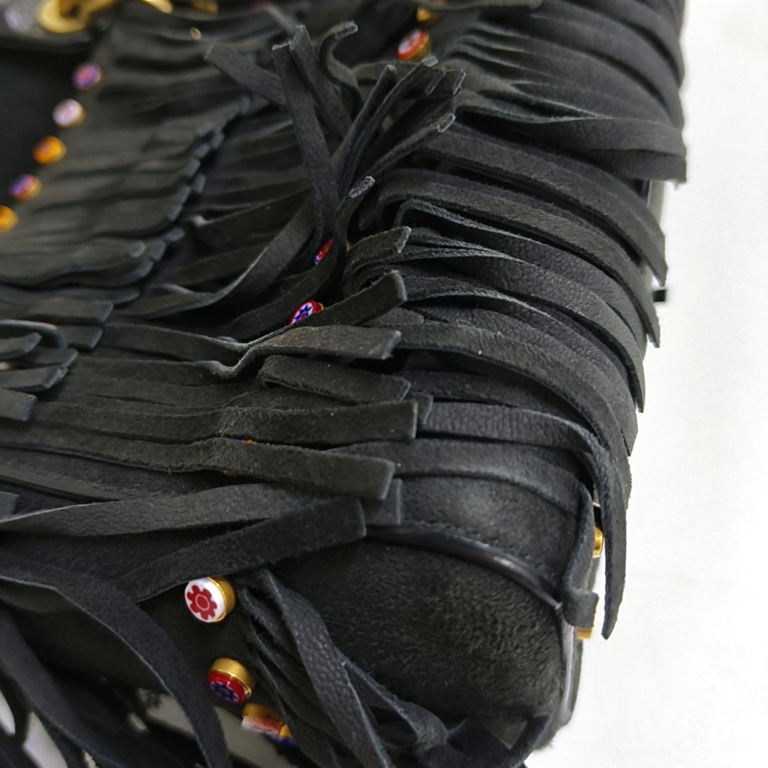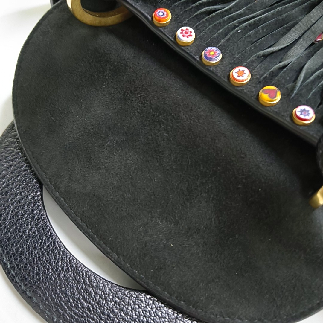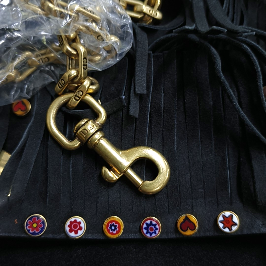 DIOR Lady Dior Mini Black Suede Leather Studded Fringe Crossbody Bag with Gold Hardware, Detachable Strap-(SKU)-961788599
