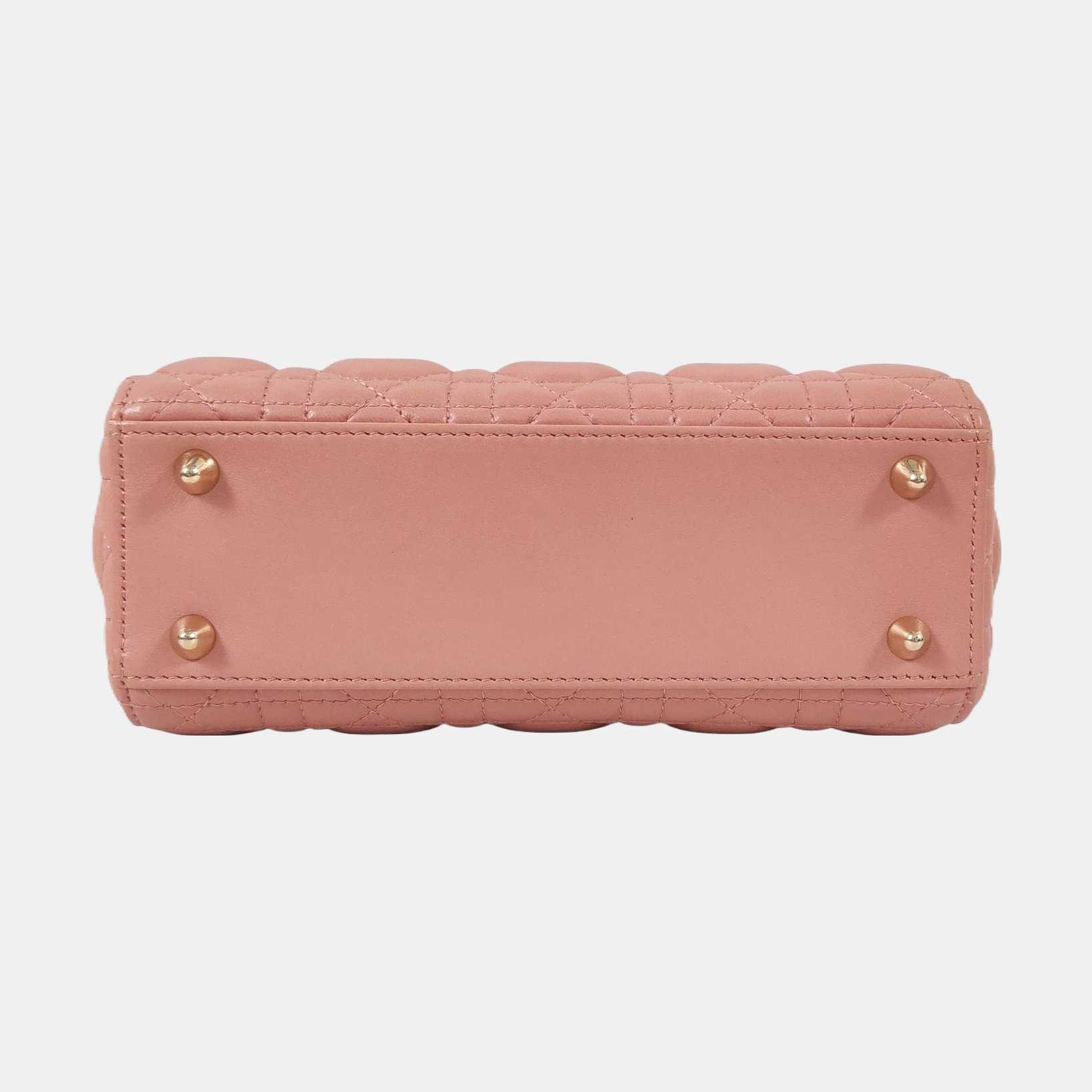 DIOR Lady Dior Small Size Pink Lamb Leather Quilted Cannage Bag with Detachable Strap-(SKU)-965734341