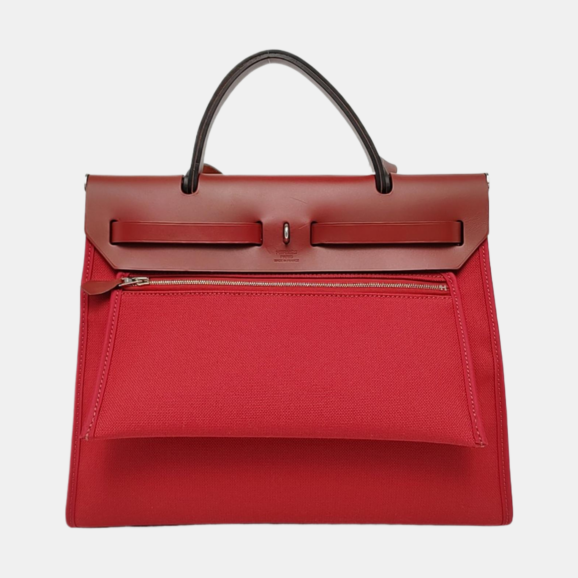 HERMÈS Herbag 31 Hermes Red Canvas Shoulder Bag Handbag Silver Hardware Y Engraving Removable Strap-(SKU)-970274118