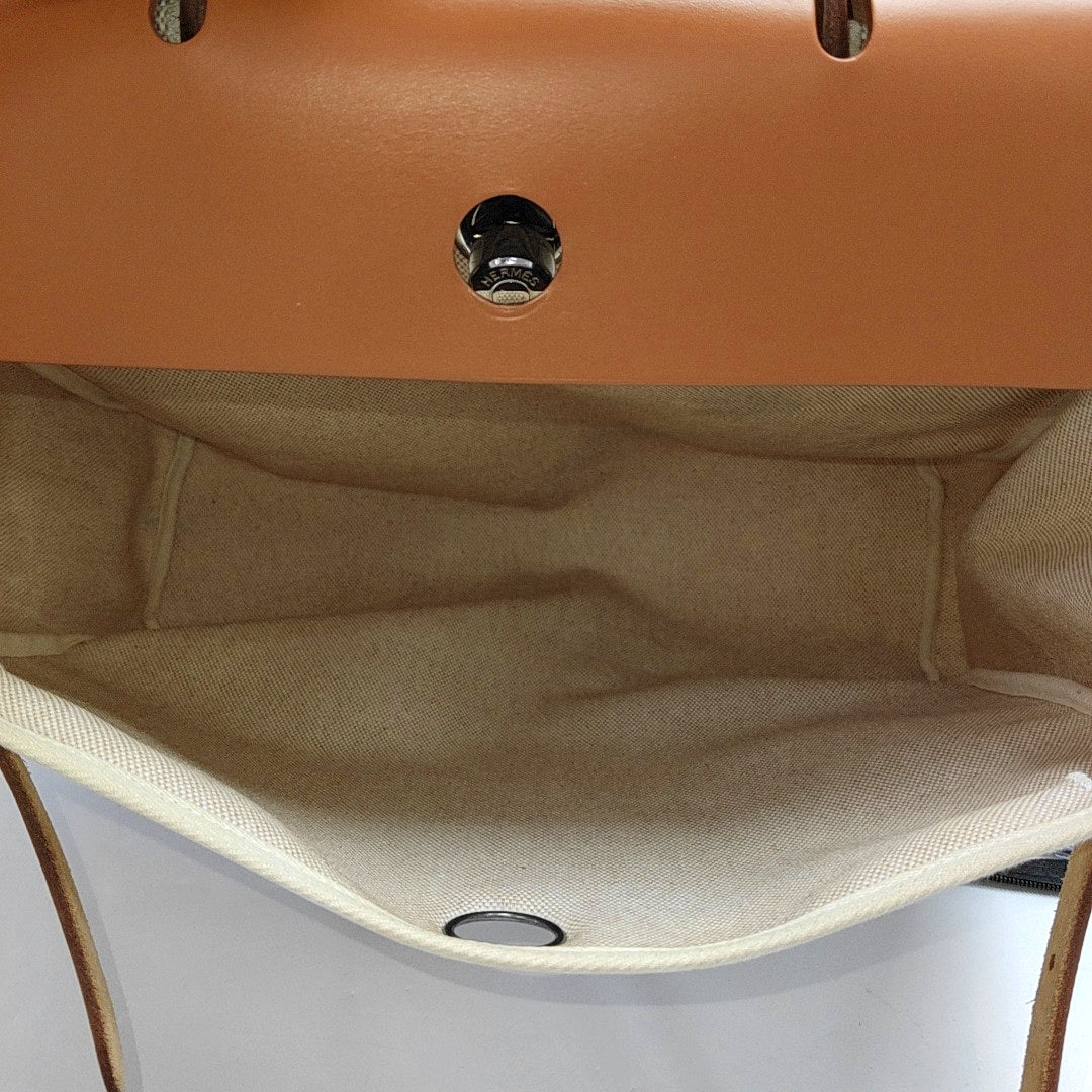 HERMÈS Herbag 39 Milkshake White Canvas Shoulder Bag Tote with Detachable Strap-(SKU)-970841956