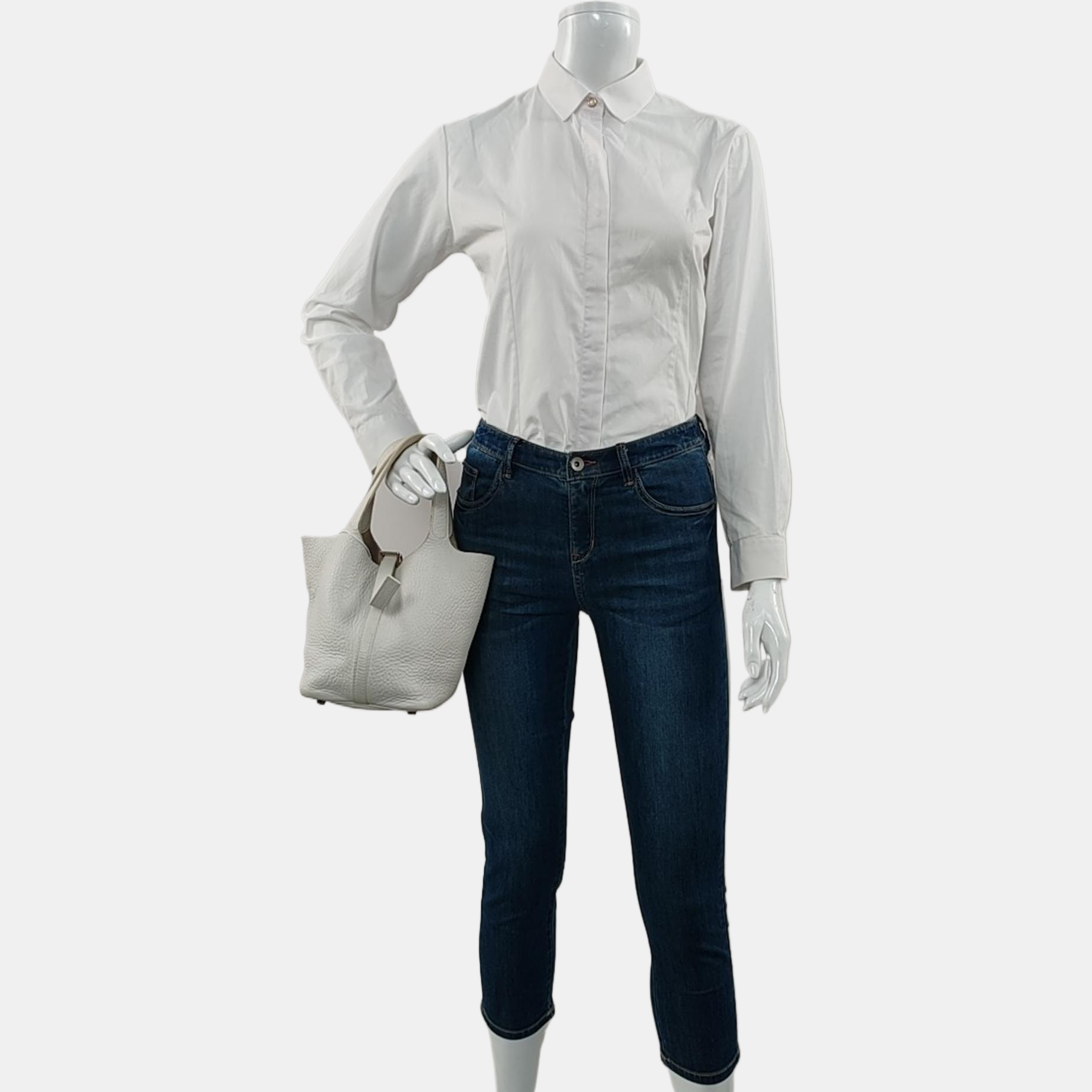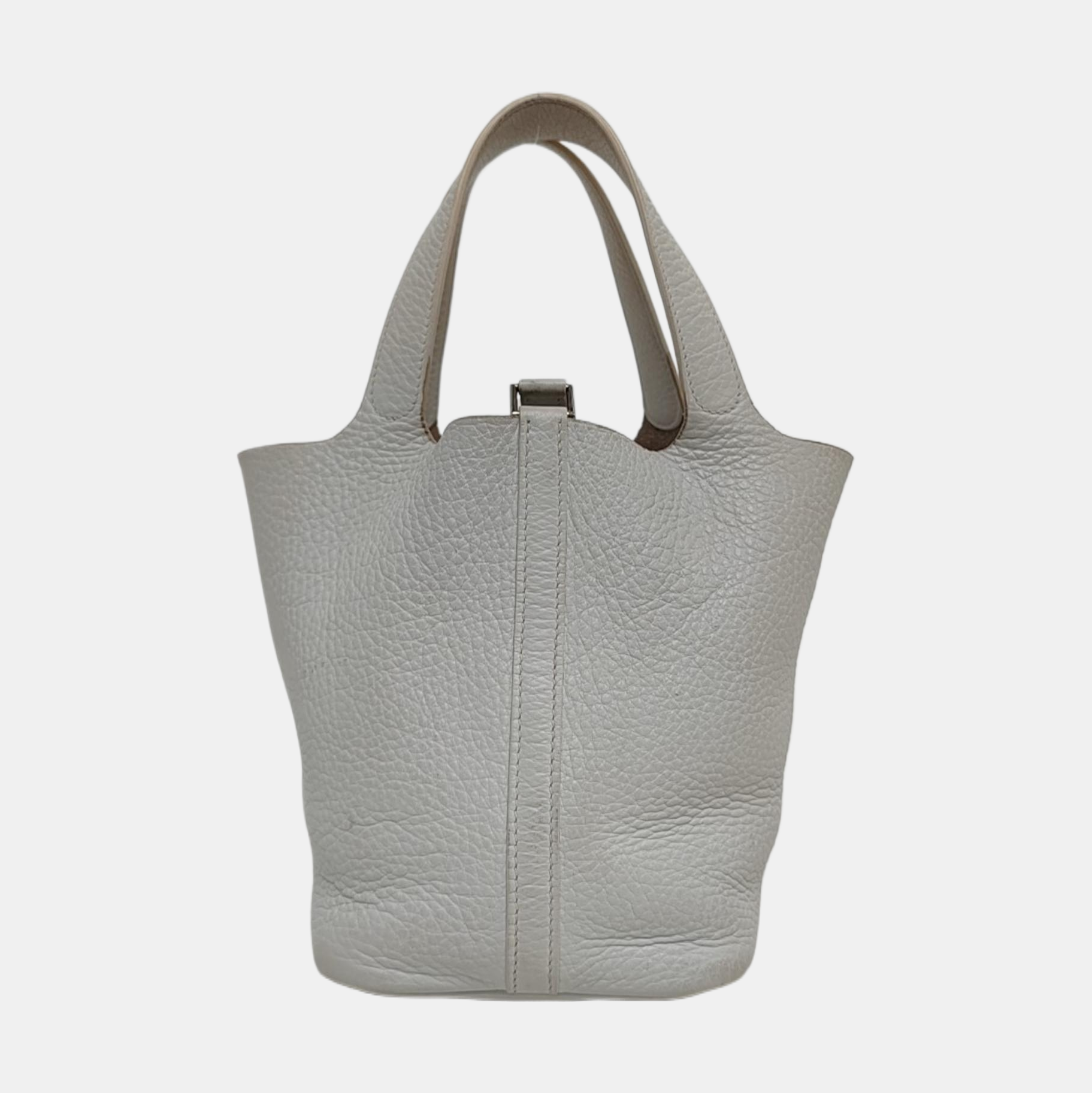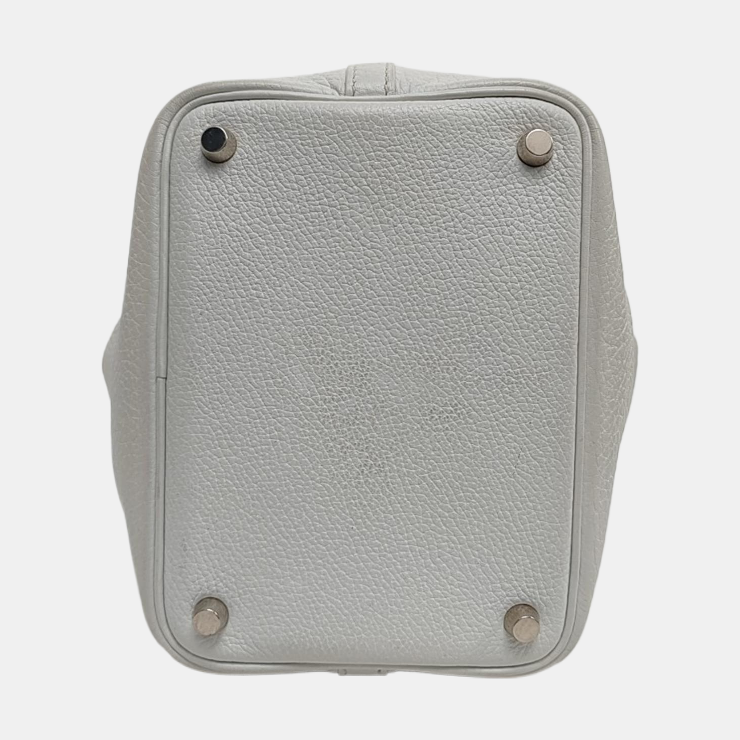 HERMÈS Picotin 18 White Clemence Leather Basket Handbag Silver Hardware 🄵 Engraving-(SKU)-971056955