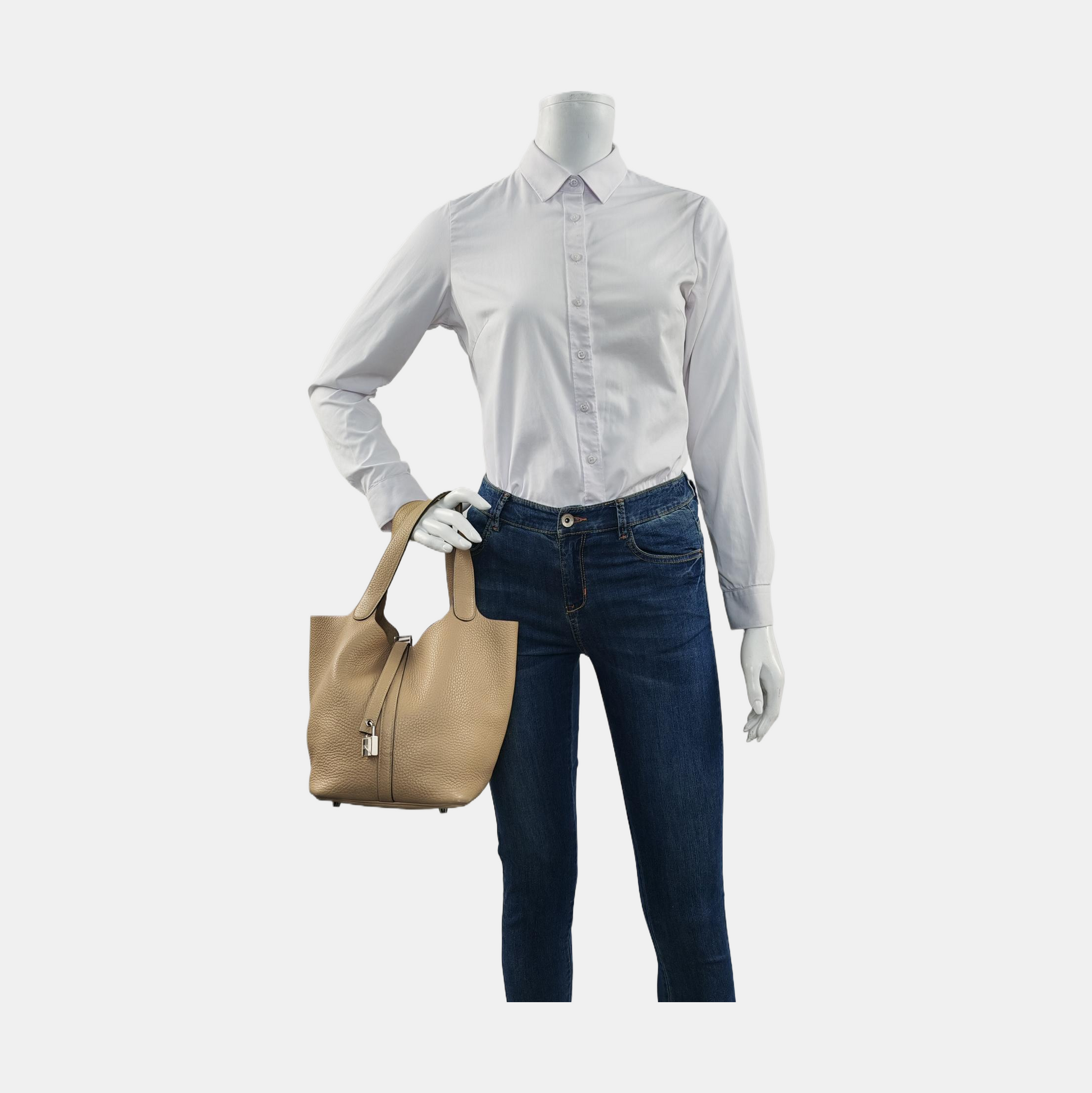 HERMÈS Picotin Lock 22 Khaki Clemence Leather Basket Handbag with Silver Hardware and X Engraving-(SKU)-955859168