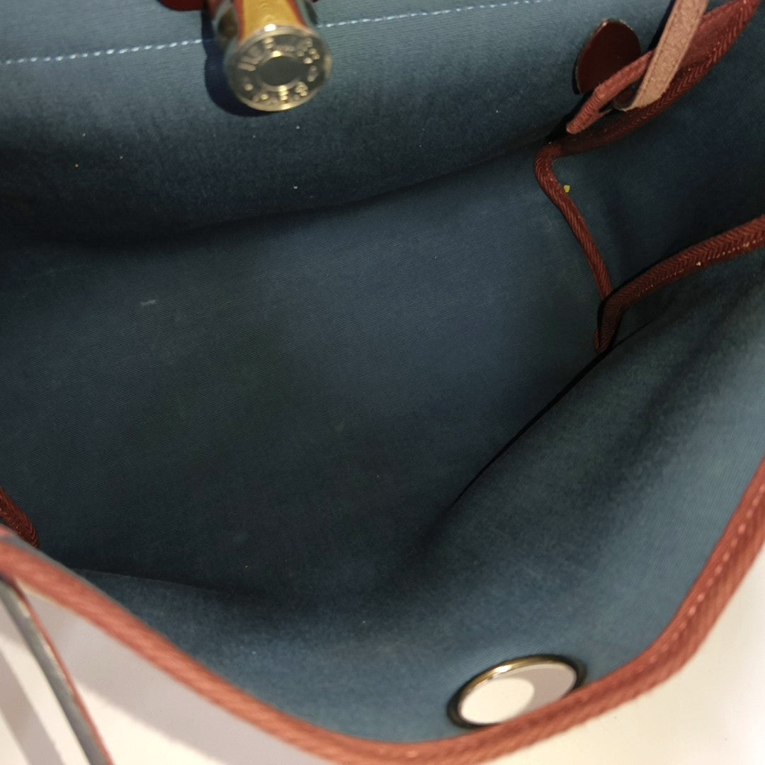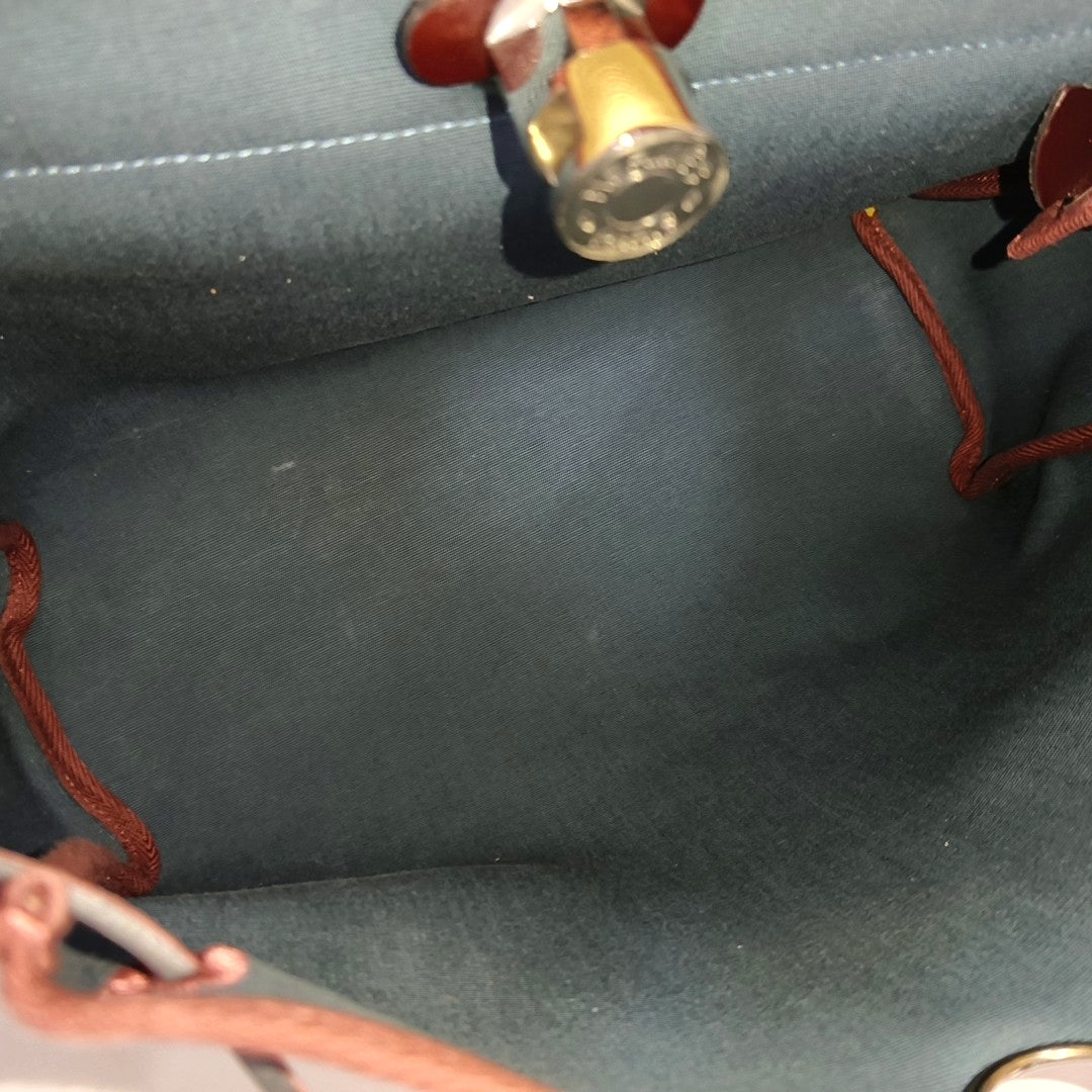 HERMÈS Herbag 31 Massala Tea Canvas Single Shoulder Bag Silver Hardware U Pouch Removable Strap-(SKU)-969010862