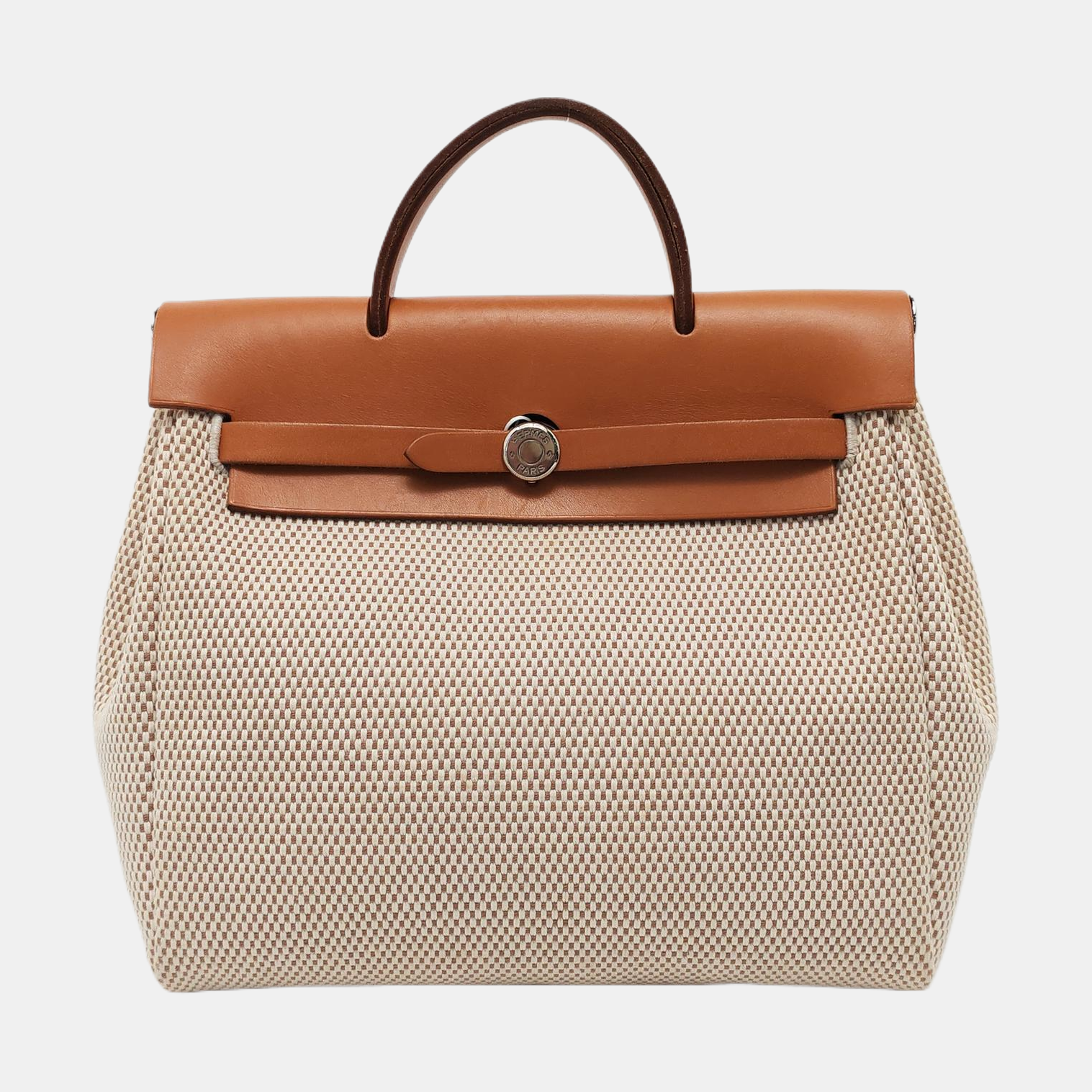 HERMÈS Herbag Small Milkshake White Canvas Backpack Handbag with Silver Hardware 🄷 Mark-(SKU)-953760184