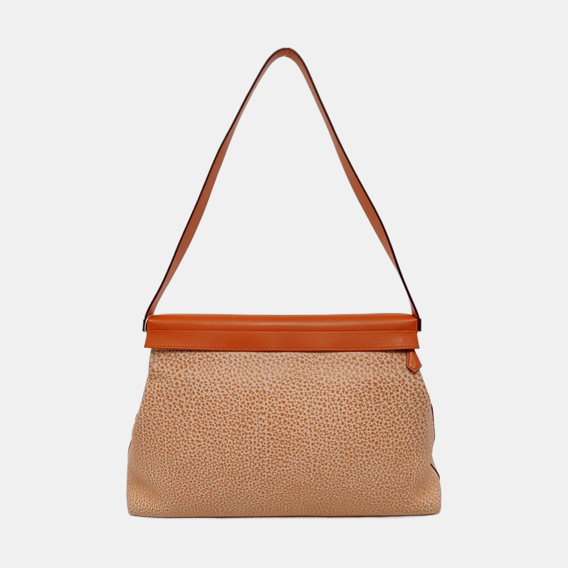 HERMÈS Yeoh Orange Pink Buffalo Leather Single Shoulder Bag Silver Hardware 🄶 Sub Pockets-(SKU)-951814551